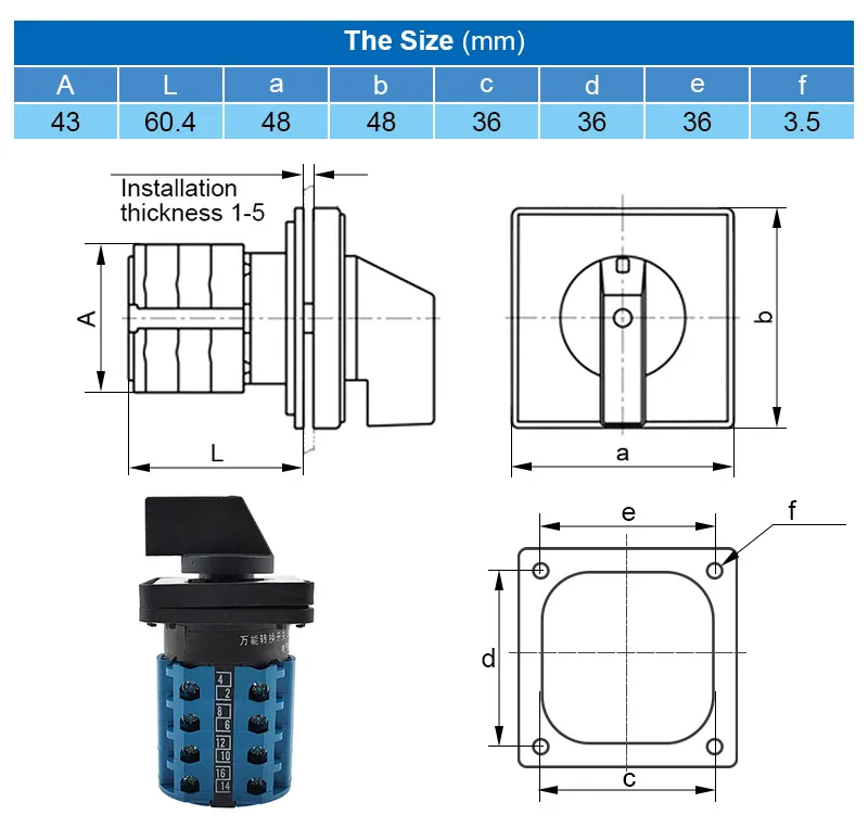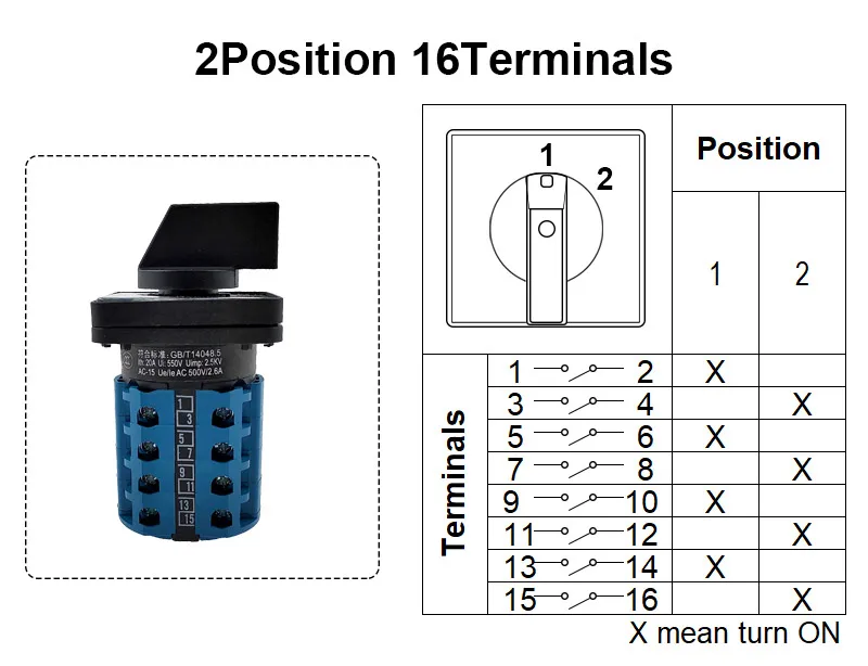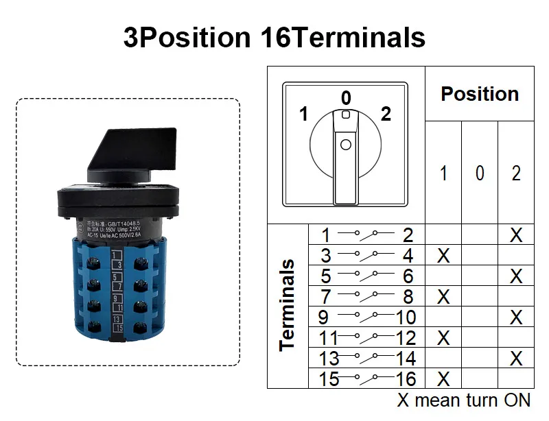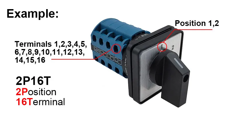 Comprar Interruptor de cambio de leva giratorio eléctrico de 2 posiciones y 16 terminales 550V 20A LW28-20A