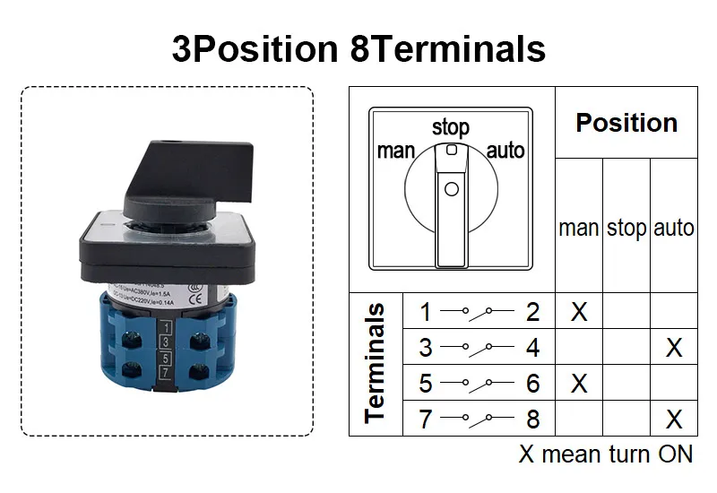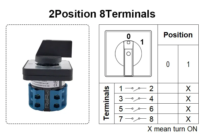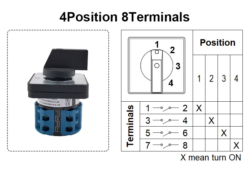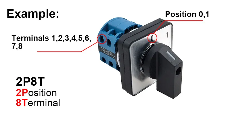 Comprar Interruptor de cambio de leva rotativa, accesorio eléctrico de 2/3/4 posiciones, 8 terminales, 500V, 20A, LW28-20