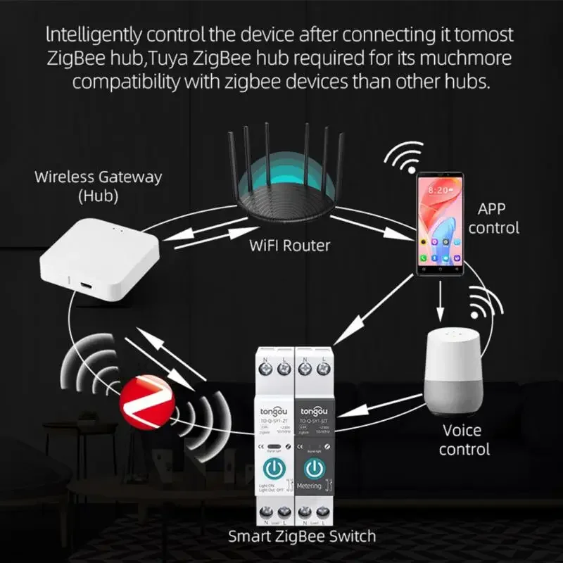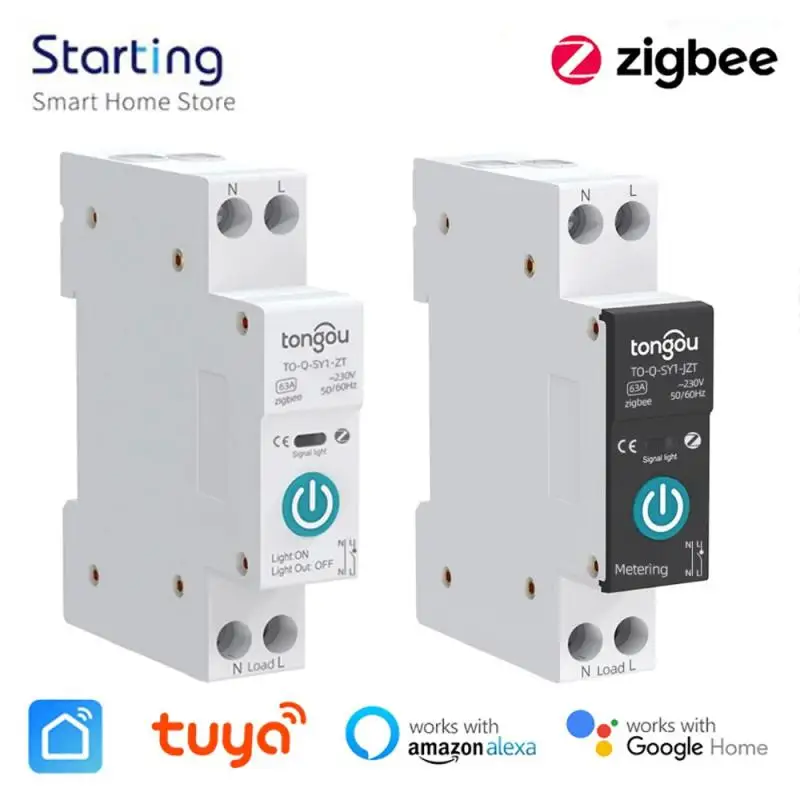 Comprar Interruptor de circuito inteligente Tuya ZigBee con medición, 1P, 63A, carril DIN, Control remoto, funciona con Alexa y Google Home