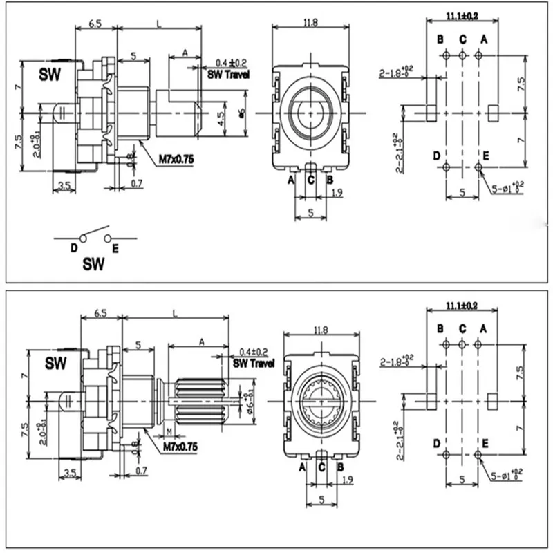 Comprar Interruptor codificador giratorio Ec11, potenciómetro de señal Digital de pulso de 20 bits, 15/20mm, mango de flor de ciruelo, medio eje, 5 unidades por lote