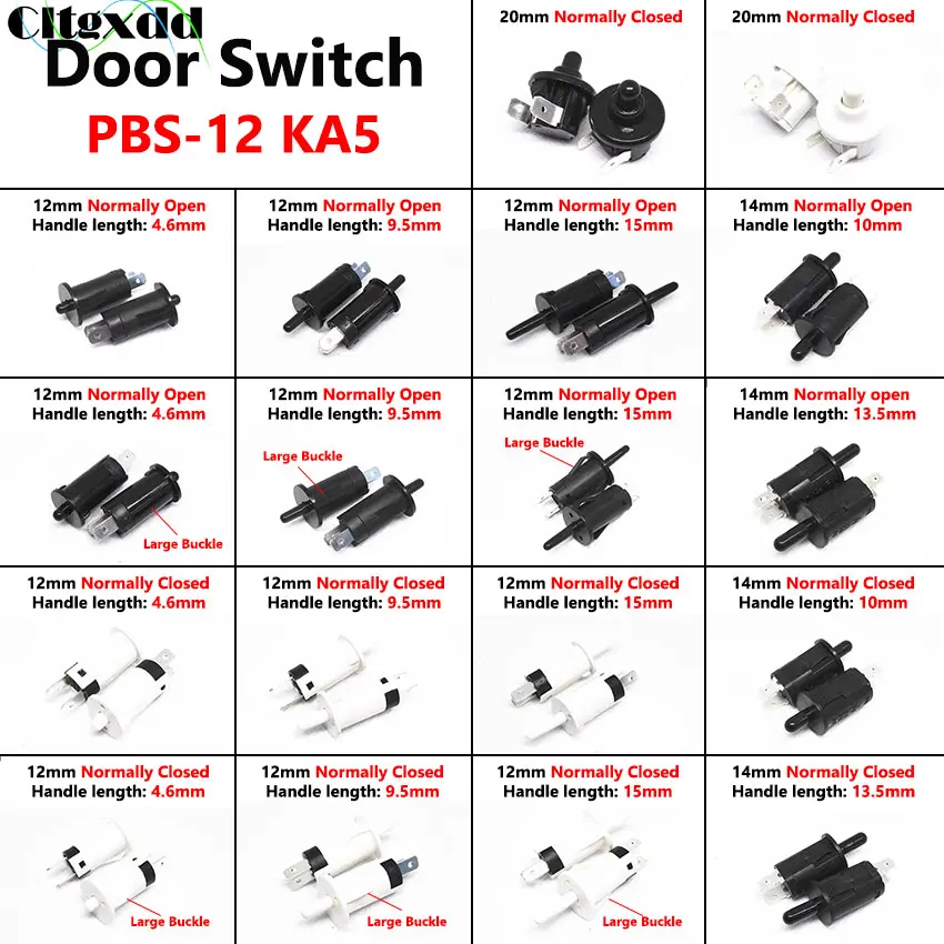 Comprar Interruptor de Control de puerta KA5, 12mm, 14mm, autoreinicio, normalmente abierto/cerrado, desinfección de refrigerador, luz de armario, botón de puerta de armario