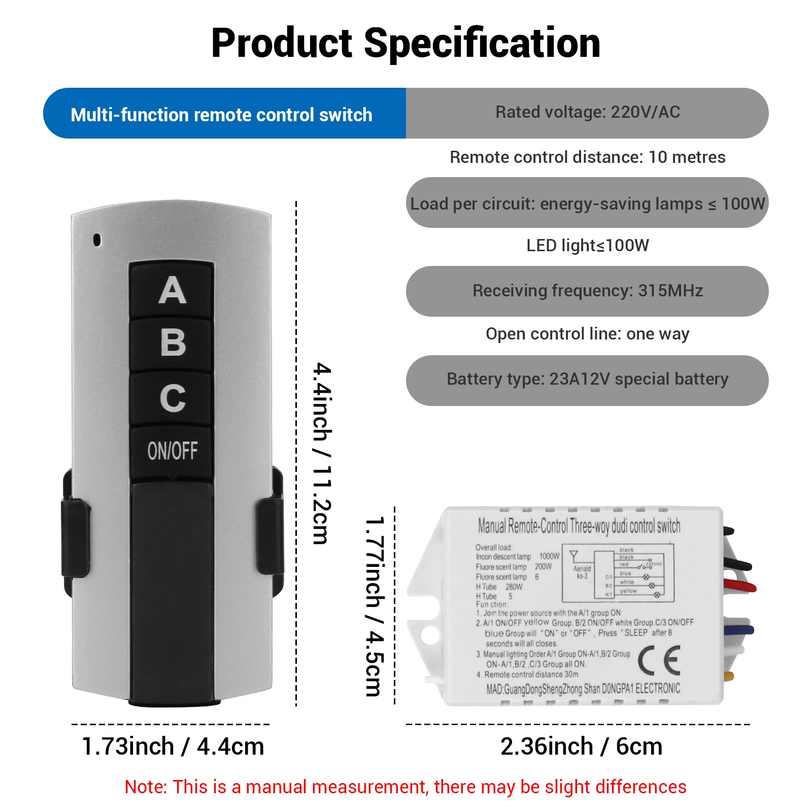 2. Permita una desviación de medición de 1-3cm debido a la medición manual.