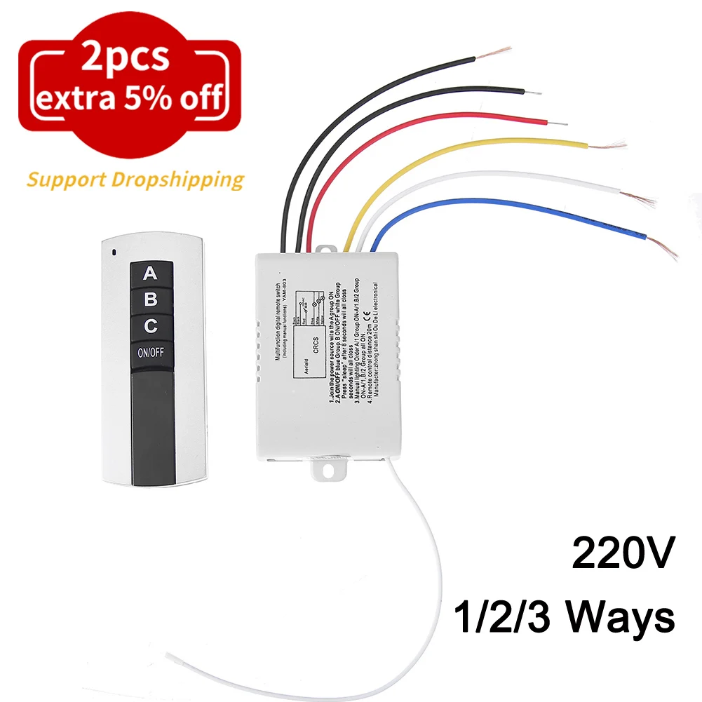 Comprar Interruptor de Control remoto inalámbrico de 220V, 1000W, 1/2/3 canales, 1, 2 y 3 vías, Control remoto Digital para iluminación