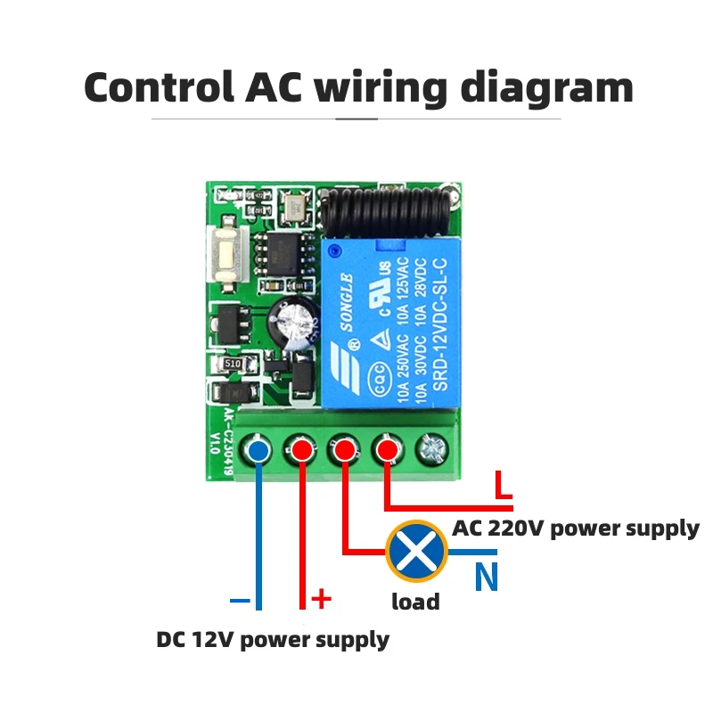 Modo de enclavamiento: después de aprender los códigos de los dos botones del control remoto, presione la tecla A para activar el relé y presione la tecla B para desactivar el relé.