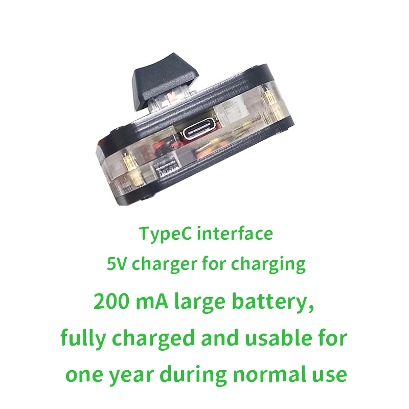 2. Equipado con una batería integrada de 200 miliamperios, se puede recargar repetidamente. Puede usar el cable de carga tipo C del teléfono y la cabeza para cargar. Tenga en cuenta que nuestra tienda no viene con un cable de carga.
