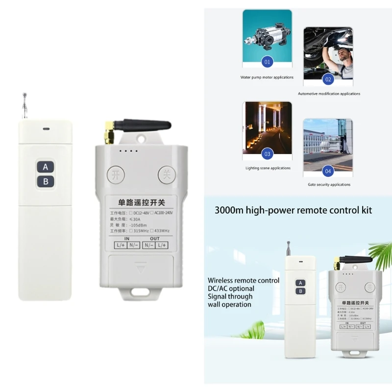Este interruptor remoto de larga distancia se utiliza en bombas, bombas de barro, motores, lámparas, ventiladores, pulverizadores, lavadoras de automóviles, etc.Varios tipos de equipos eléctricos.