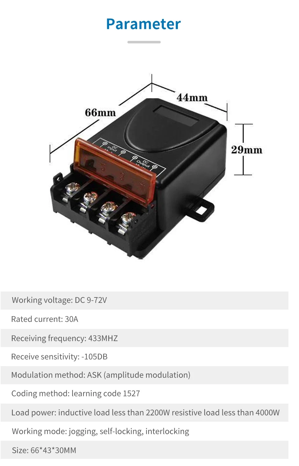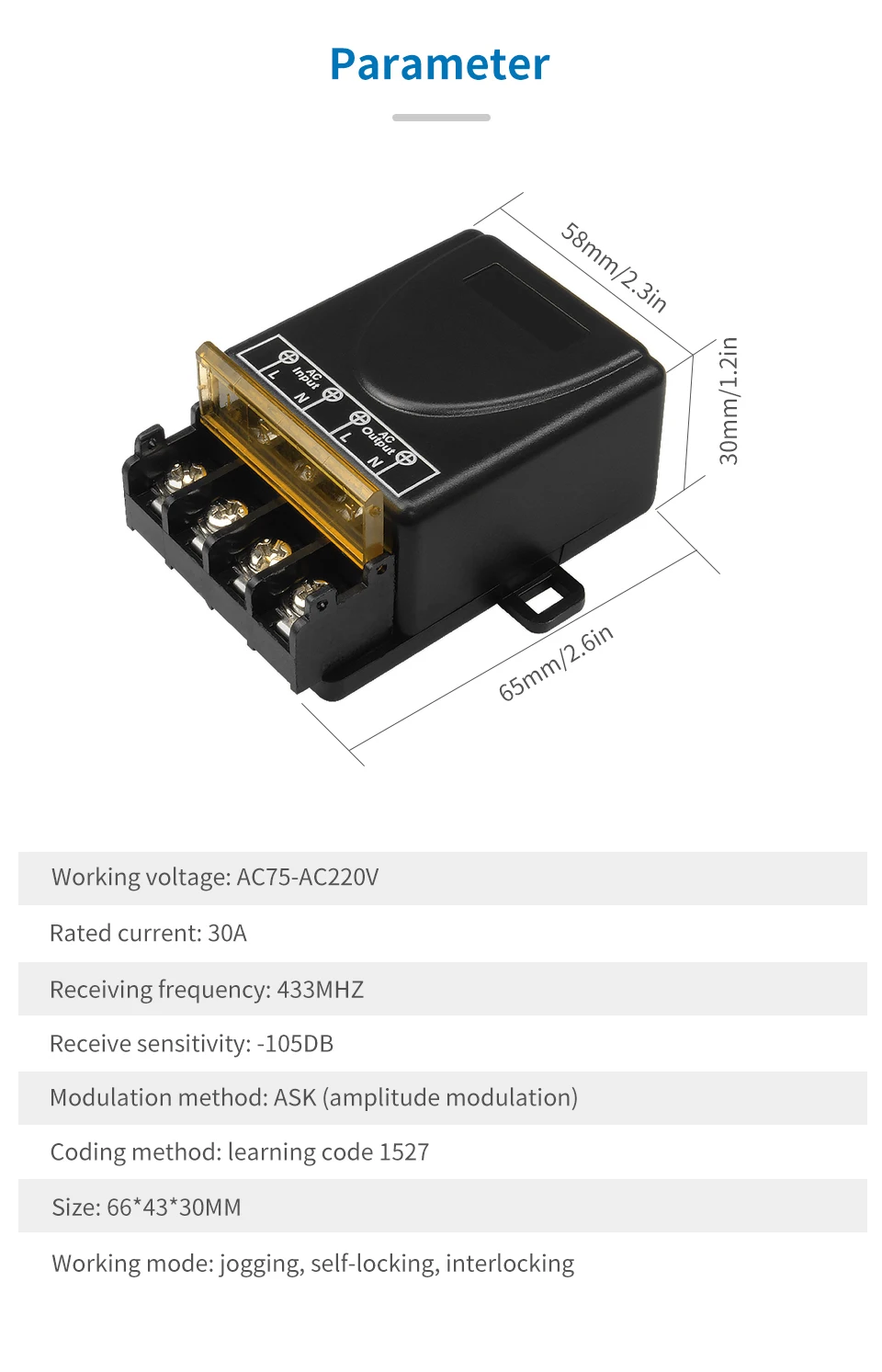 Frecuencia de funcionamiento: 433MHz (igual que el control remoto)
