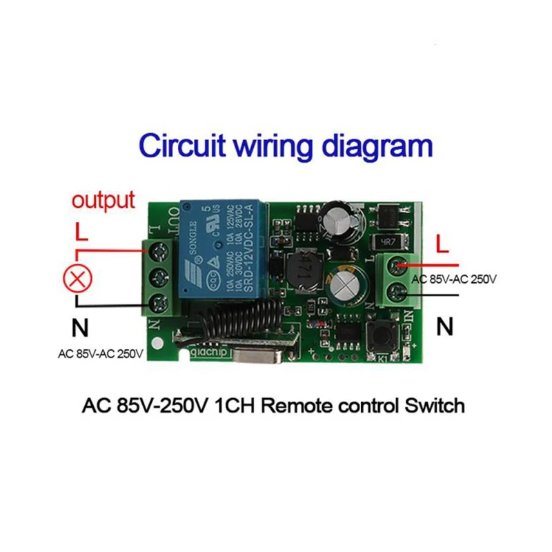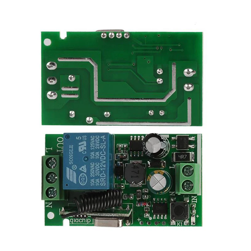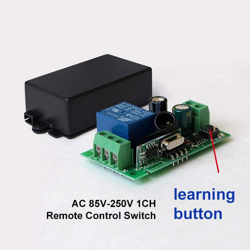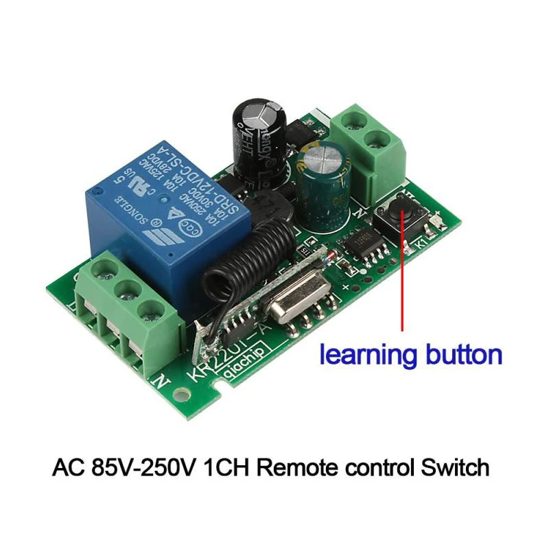 Borrado del código:Presione el botón de aprendizaje en los receptores 8 veces, los códigos se limpiarán.Después de limpiar el código, todo el control remoto ya no puede funcionar.Aprender el código: (momentáneo)Presione la tecla de aprendizaje en el receptor una vez, entra en modo de configuración momentánea.Espere un momento, el LED se apagará, entra en estado de aprendizaje.Presione el botón remoto, el indicador LED en la placa receptora parpadeará y se apagará.Después de 3 segundos, el indicador LED se encenderá de nuevo, aprendiendo con éxito.Aprendizaje del código: (alternar)Presione dos veces la tecla de aprendizaje en el receptor, para acceder al modo de conmutación.Espere un momento, el LED se apagará, entra en estado de aprendizaje.Presiona el botón remoto, el indicador LED en la placa receptora parpadeará y se apagará.Después de 3 segundos, el indicador LED se encenderá de nuevo, aprendiendo con éxito.Aprendizaje del código: (enganche)Nota: cuando elige el modo de bloqueo, control remoto para aprender más, debe aprender dos botones diferentes, la primera vez que aprende es para ENCENDIDO, la segunda vez que aprende para APAGADO.Por Ejemplo: botón A=encendido, botón B=apagadoPresione la tecla de aprendizaje en el receptor tres veces, entra en modo de bloqueo.Espere un momento, el indicador LED en la placa receptora parpadeará y se apagará.Presione el botón remoto A. El LED parpadea 5 veces.Presiona el botón remoto B. Flash LED para 5 vecesDespués de 3 segundos, el indicador LED se encenderá de nuevo, aprendiendo con éxito.A=Encendido, B=Apagado.Comprar Interruptor de Control remoto inalámbrico Universal, módulo receptor de relé para Motor de puerta de garaje, 433Mhz, CA 250V, 110V, 220V, 1 canal