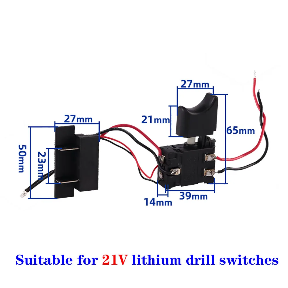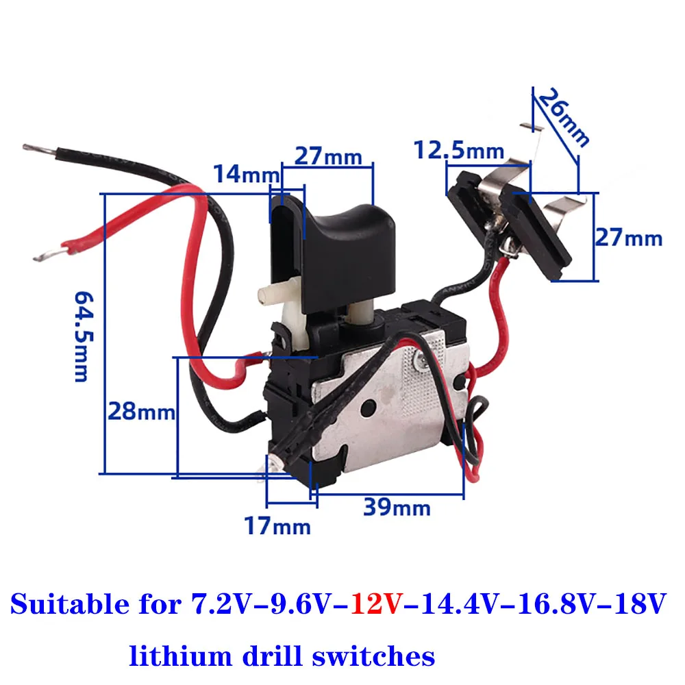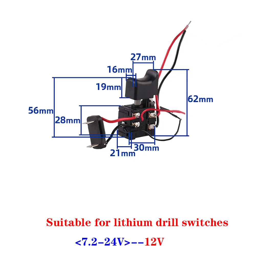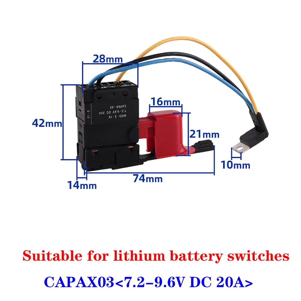 Interruptor de control de taladro DC 7,2 V-24V 20A interruptor de gatillo inalámbrico, utilizado para herramientas eléctricas de batería de litio y interruptores de taladro