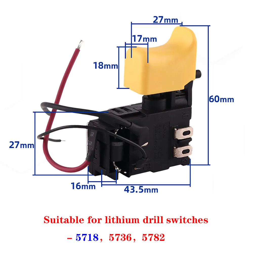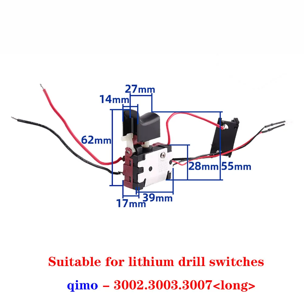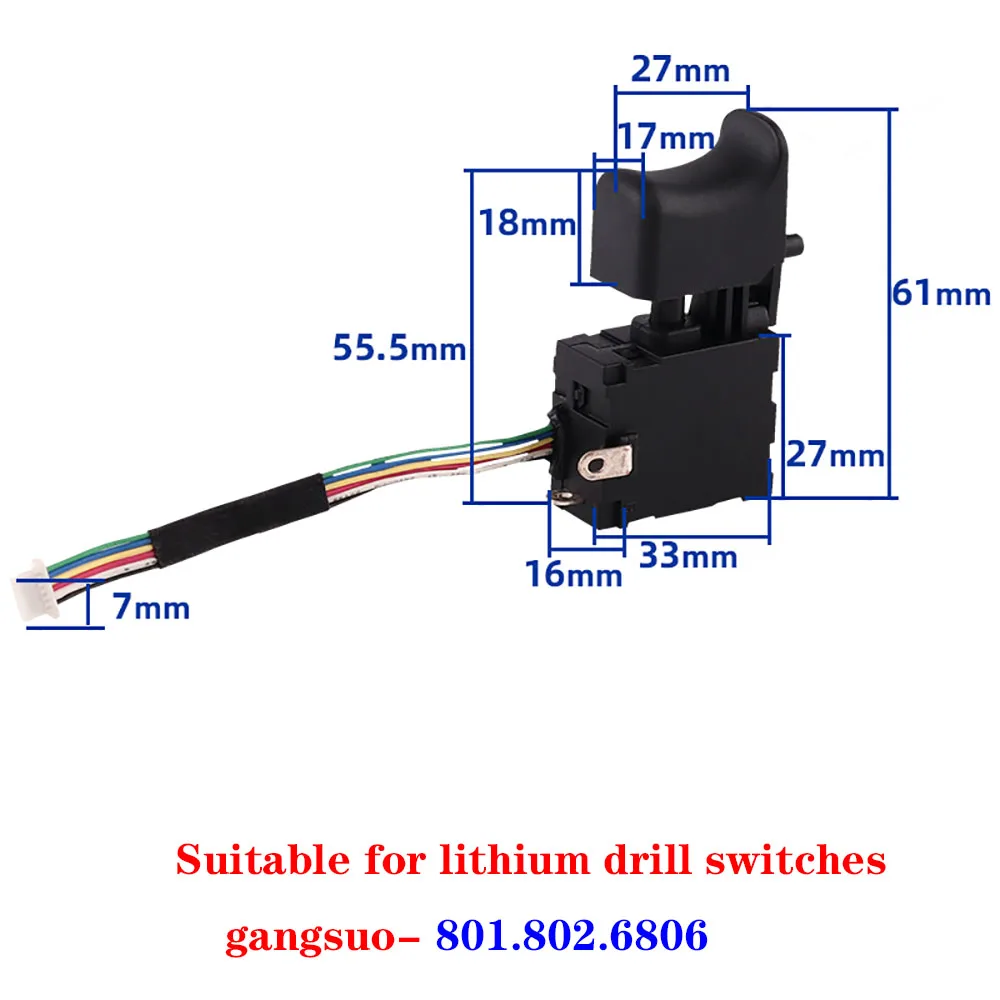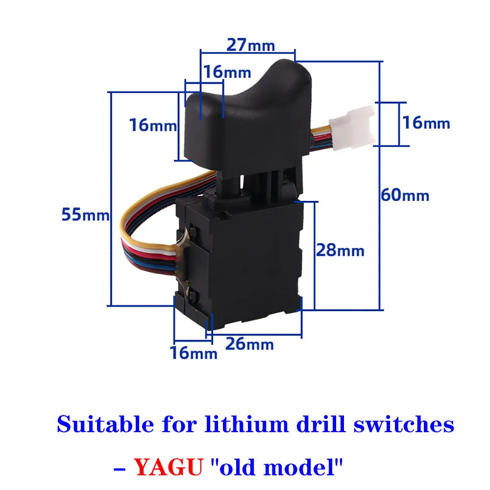 Interruptor de control de taladro DC 7,2 V-24V 20A interruptor de gatillo inalámbrico, utilizado para herramientas eléctricas de batería de litio y interruptores de taladro