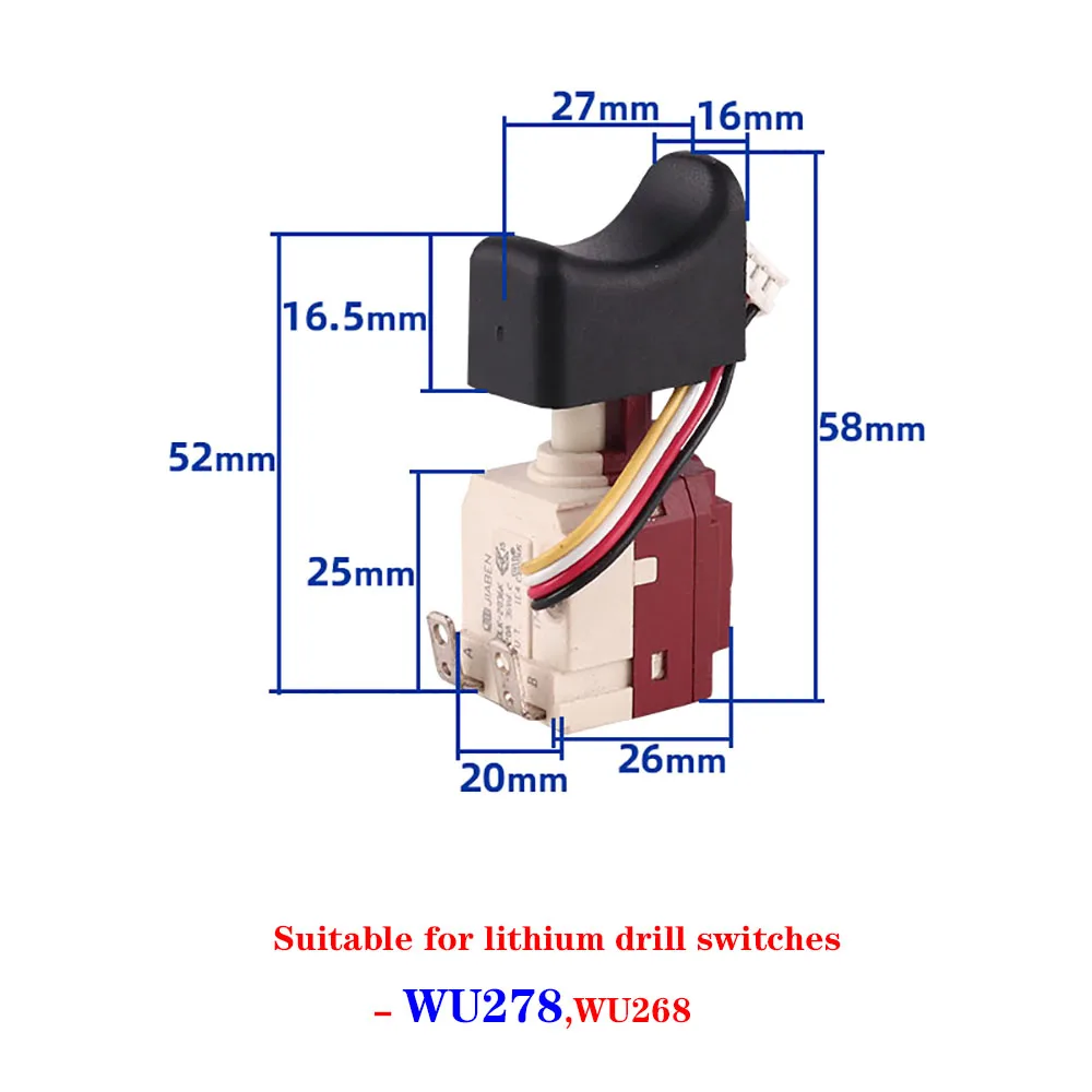 Comprar Interruptor de control de taladro DC 7,2 V-24V 20A interruptor de gatillo inalámbrico, utilizado para herramientas eléctricas de batería de litio y interruptores de taladro