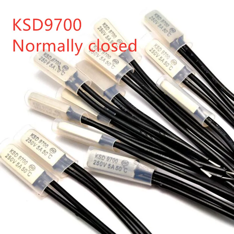 Comprar Interruptor de Control de temperatura, caja de Metal de 5 piezas, normalmente cerrada, KSD9700, 40, 45, 50, 55, 60, 70, 80, 90, 105 grados, 5A, 250V, NC