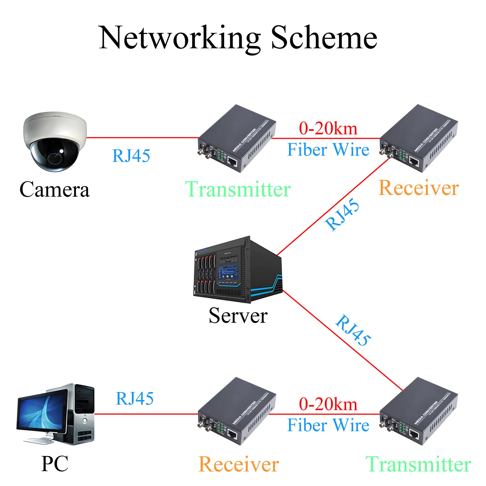 Conmutador convertidor de medios ópticos de fibra Gigabit 100/1000M modo único multimodo UPC/APC 2 ST-Port a 1 Kit transceptor de fibra RJ45