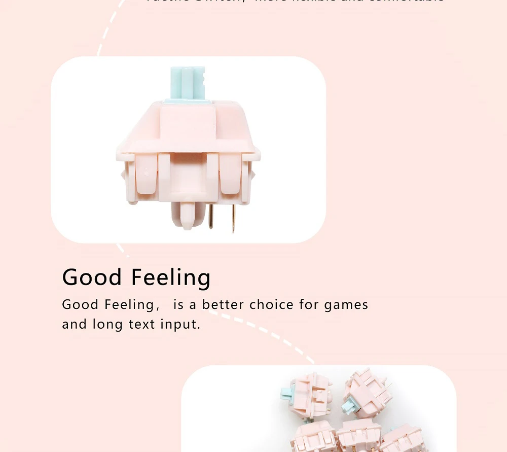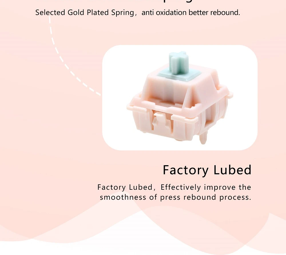 Interruptor de cubo Rosa Suger, interruptor táctil de 5 pines RGB SMD 58,5g mx para teclado mecánico POM, nailon chapado en oro, resorte de fábrica Lubed