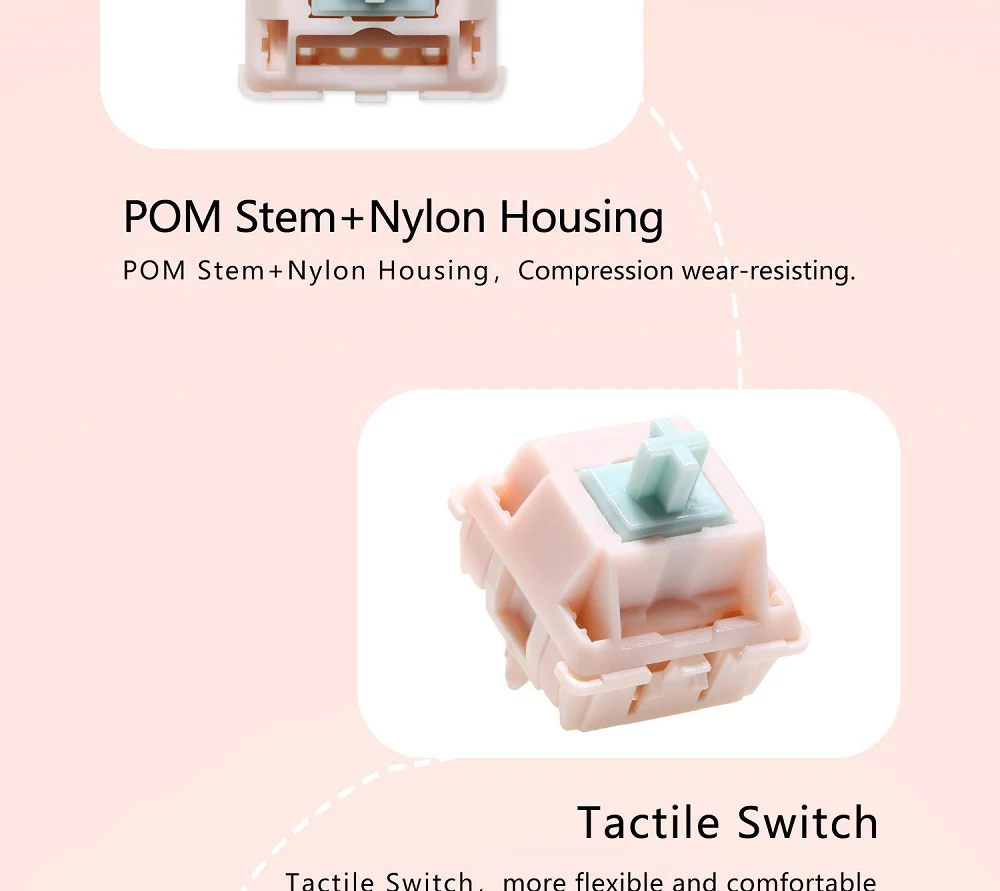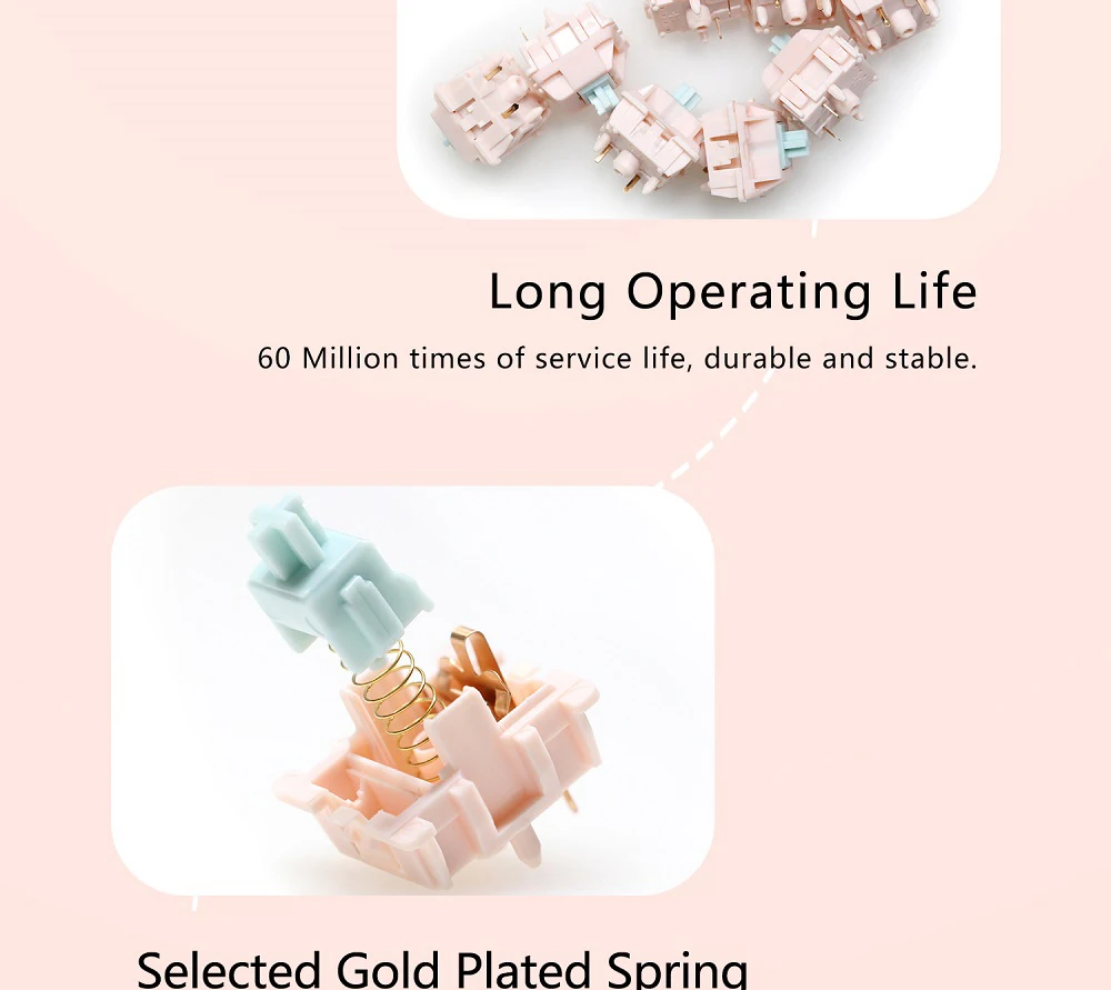 Comprar Interruptor de cubo Rosa Suger, interruptor táctil de 5 pines RGB SMD 58,5g mx para teclado mecánico POM, nailon chapado en oro, resorte de fábrica Lubed