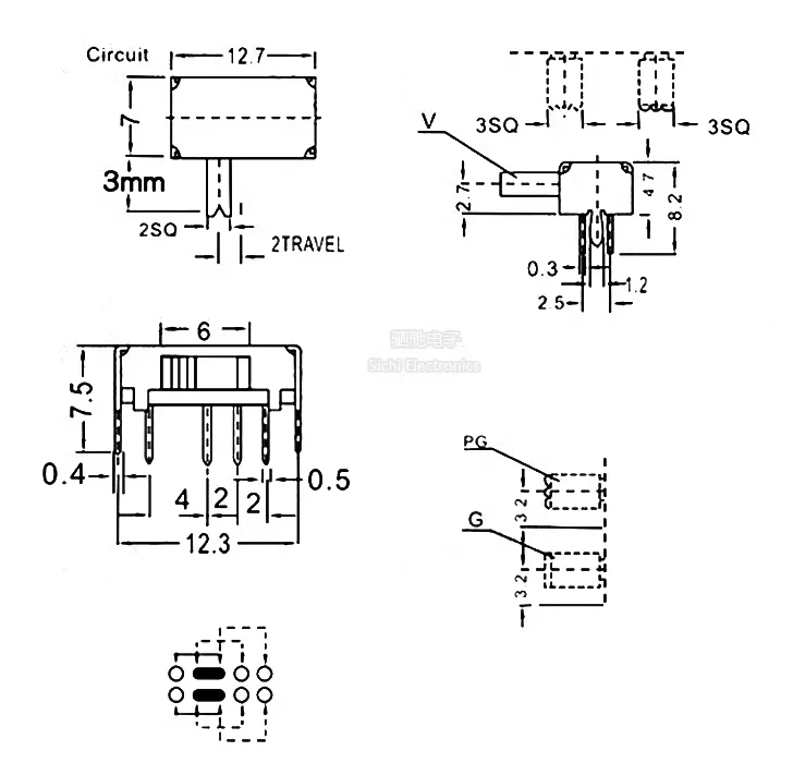 Comprar Interruptor deslizante en miniatura, perilla lateral, 10 piezas, SK23D07, 8 pines, PCB, 3 posiciones, 2P3T, DP3T, SK23D07VG4, mango alto de 4mm