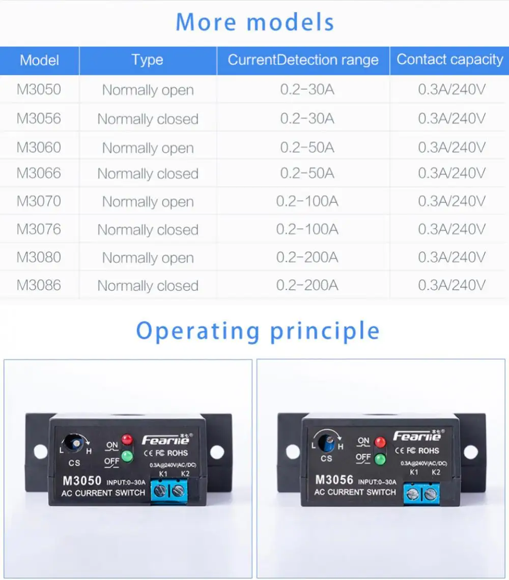 Interruptor de detección de corriente 220V, interruptor de detección de corriente, relé de inducción, dispositivo de conexión de CA, accesorios de interruptor inductor mutuo de CA