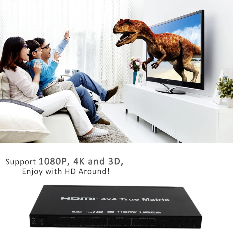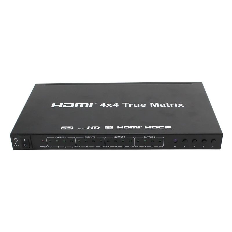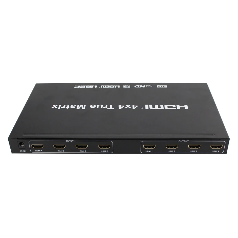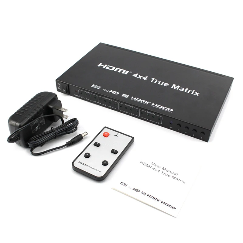 Nuestros dispositivos ofrecen soluciones para el ruido, el espacio y los problemas de seguridad, el control del centro de datos, la distribución de información, la presentación en la sala de conferencias, los entornos de formación escolar y corporativa.Contenido del embalaje:1. HDMI 4x4 True Matrix X1(No incluye batería en el interior)3. Manual de usuario x 14. Adaptador de corriente DC 12V X1