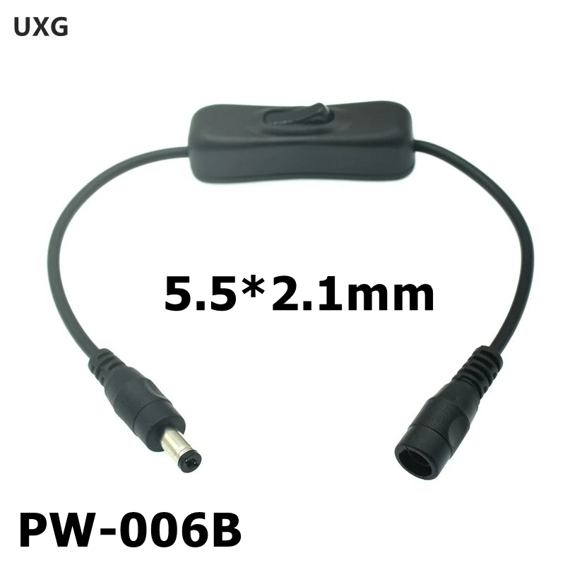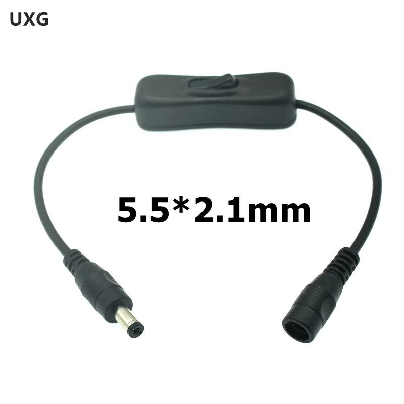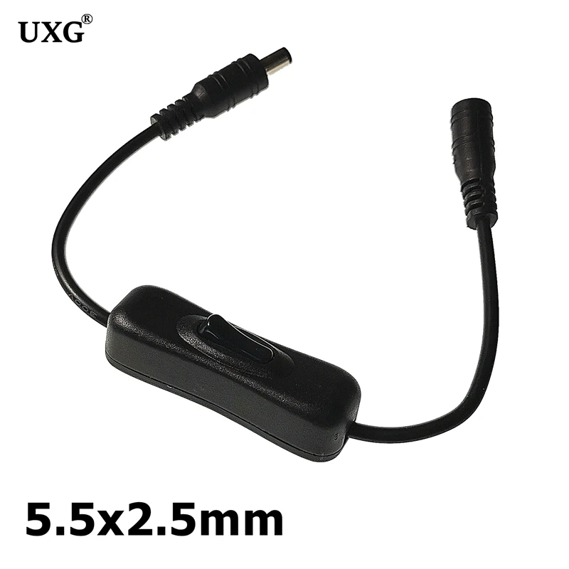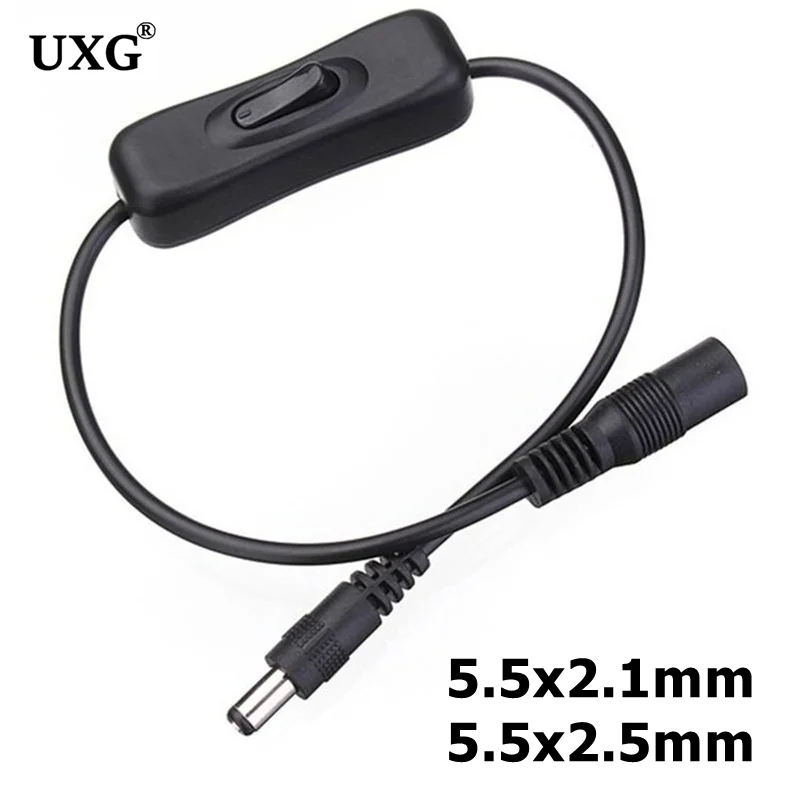 Interruptor de encendido/apagado de línea negra con conectores hembra macho DC 5,5*2,1mm para adaptadores LED de 12V 24V, atenuador, tira de luz LED