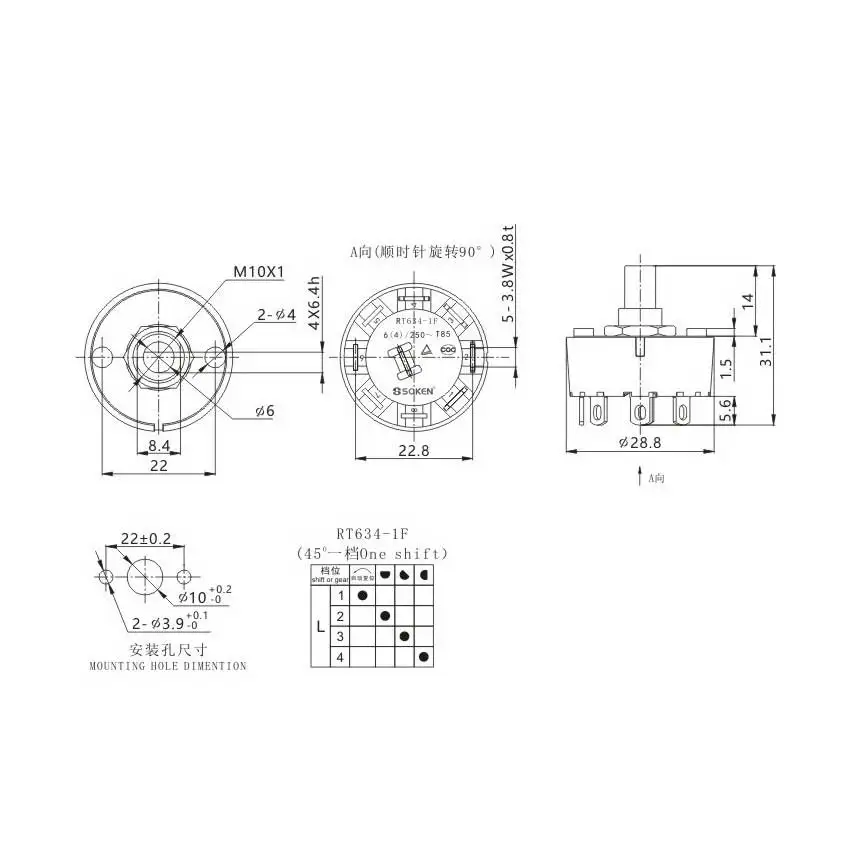Interruptor de engranaje giratorio multietapa resistente a altas temperaturas, perilla de interruptor de codificador giratorio de alta corriente, mezclador de exprimidor