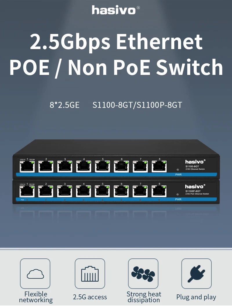 Comprar Interruptor Ethernet PoE de escritorio, conmutador de red, 8x2,5G, RJ45