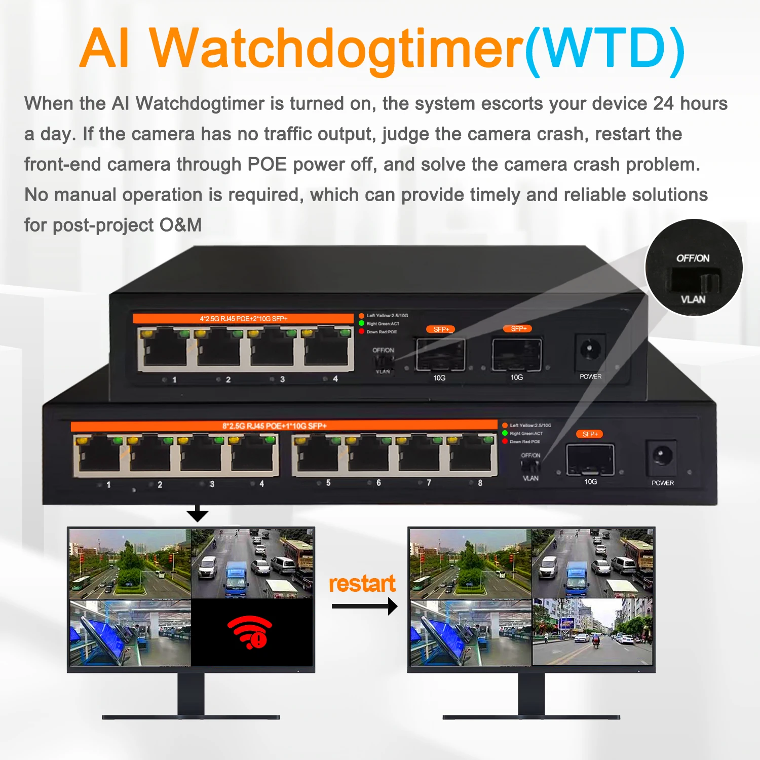 Es fácil de usar, plug-and-play, con administración inteligente, diseño de protección contra rayos y transmisión sin pérdidas para un monitoreo de seguridad sin problemas. Permite la distribución de energía de la red sin estar limitado por las líneas eléctricas, ahorrando costos de mano de obra y cableado.