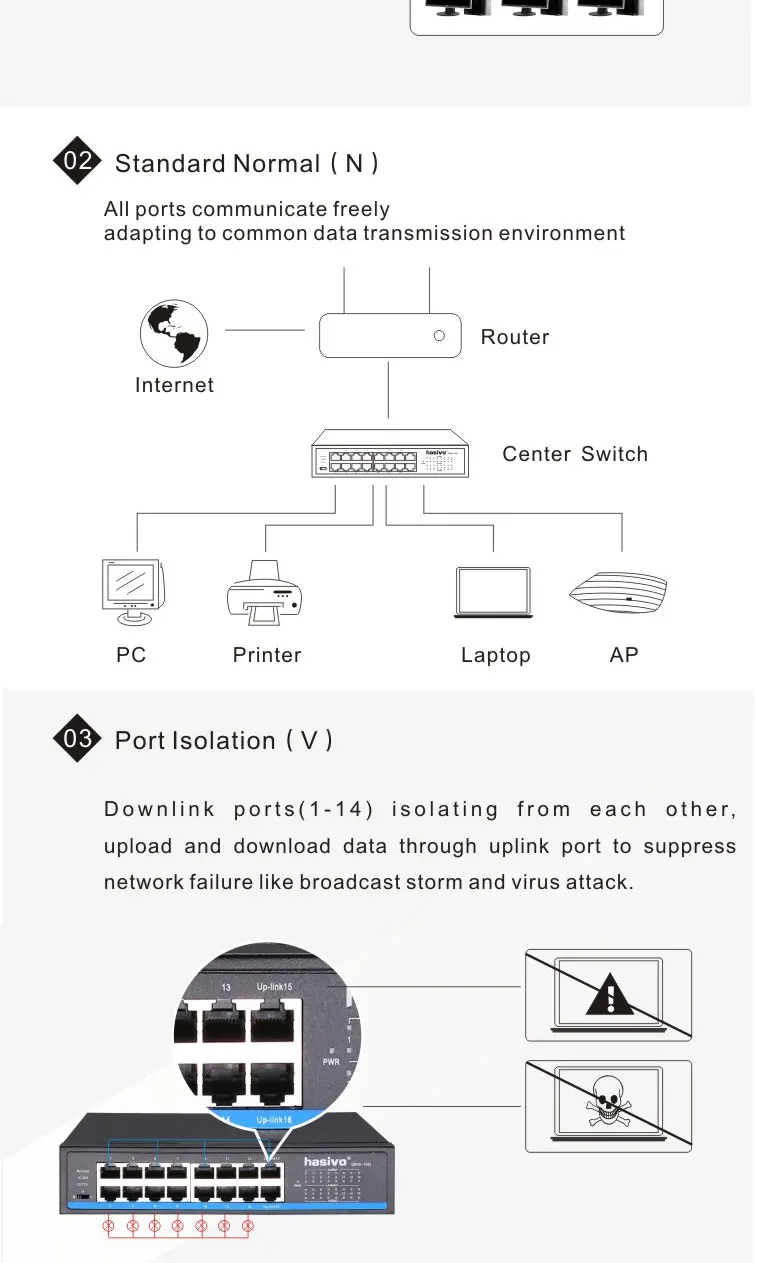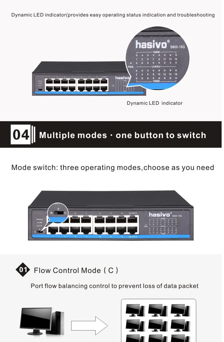 Comprar Interruptor Ethernet RJ45 de 16 puertos, conmutador lan, todo Gigabit