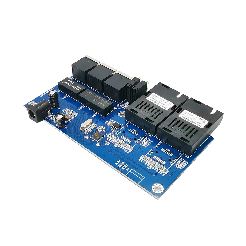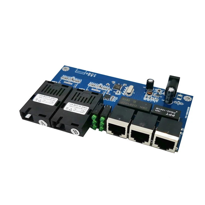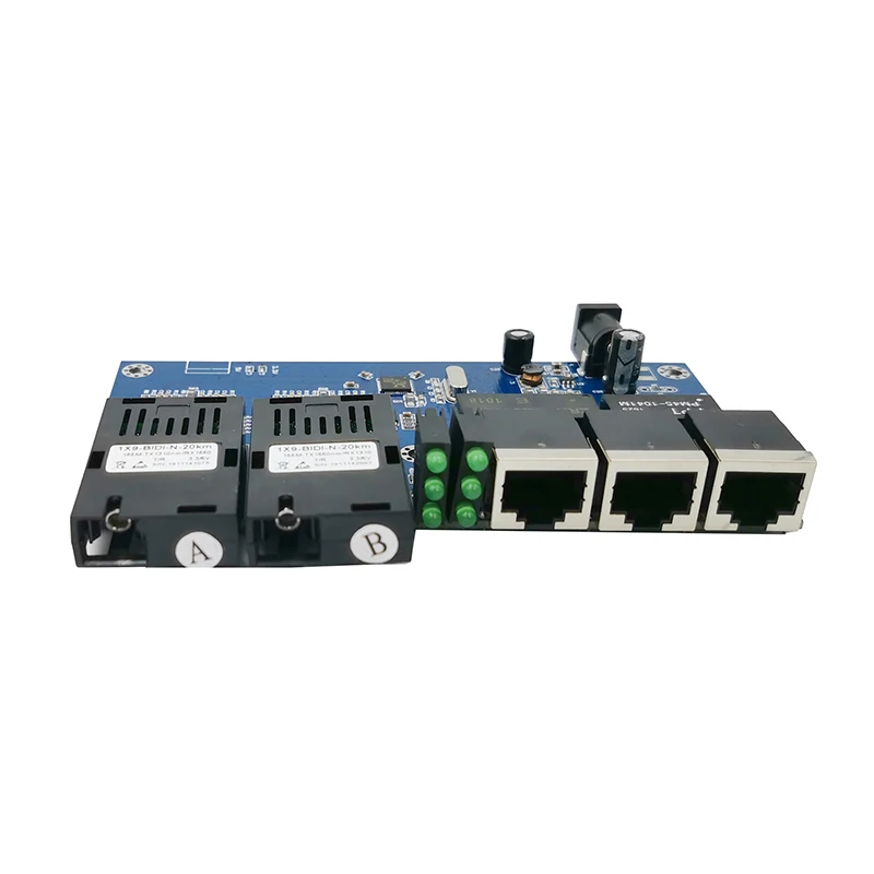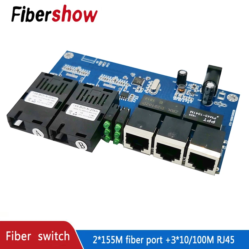 Comprar Interruptor de fibra Ethernet 3 RJ45 2 SC, convertidor de medios ópticos 2F3E, puerto de fibra de modo único, 10/100M