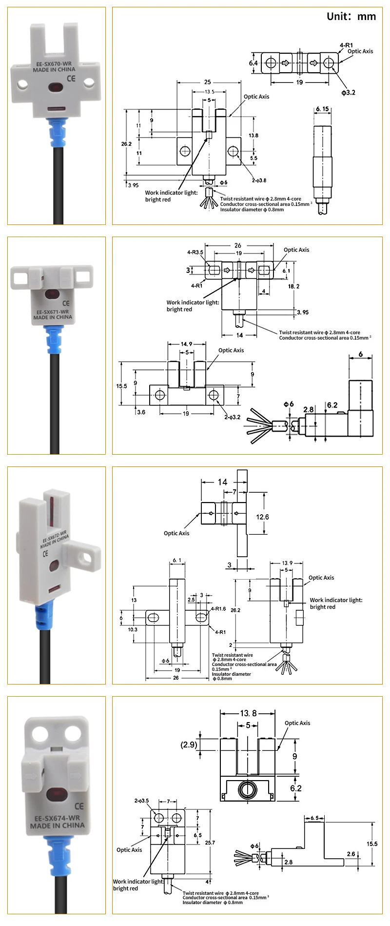 Comprar Interruptor fotoeléctrico EE-SX670-1U-slot NPN, Sensor de inducción con Cable de PU de 1m, rango de detección de 5mm, SX671, SX672, SX674, blanco y negro