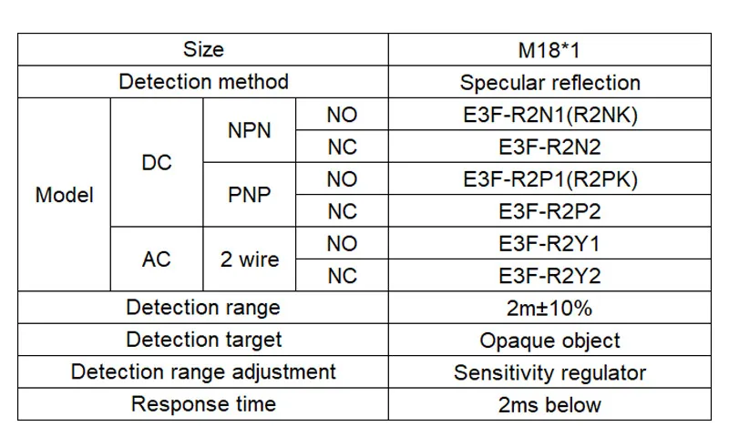 Comprar Interruptor fotoeléctrico reflectante de retroalimentación E3F-R2N1 NPN PNP DC5-36V rango de detección 2m ajustable NK/N2/P1/P2/Y1/Y2 Sensor infrarrojo