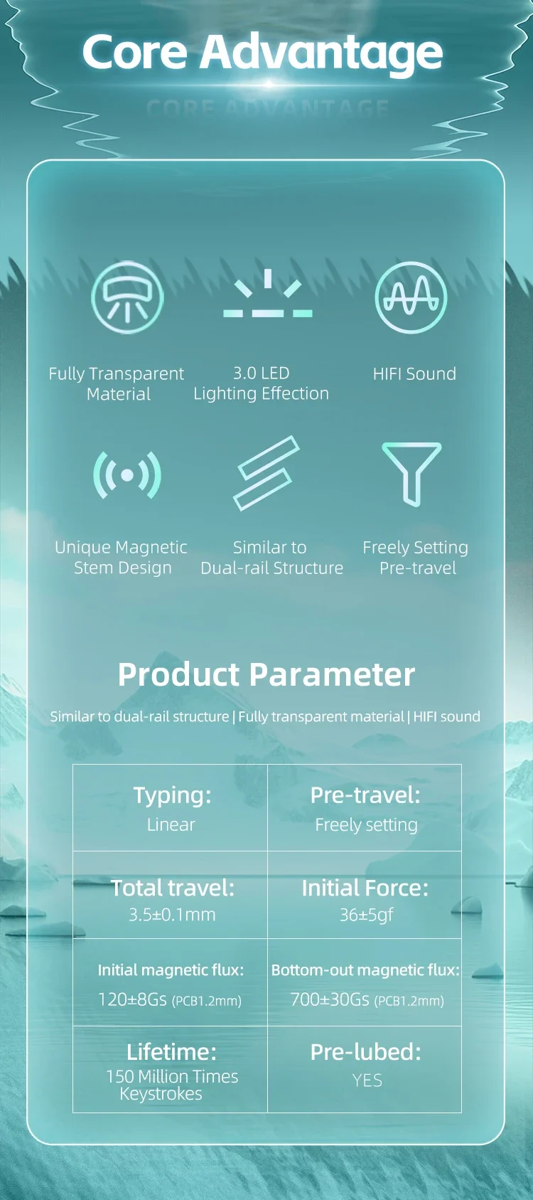Interruptor Gateron MAX, interruptor magnético lineal RGB completamente transparente, Sensor de pasillo HIFI personalizado, interruptor DIY para teclado magnético