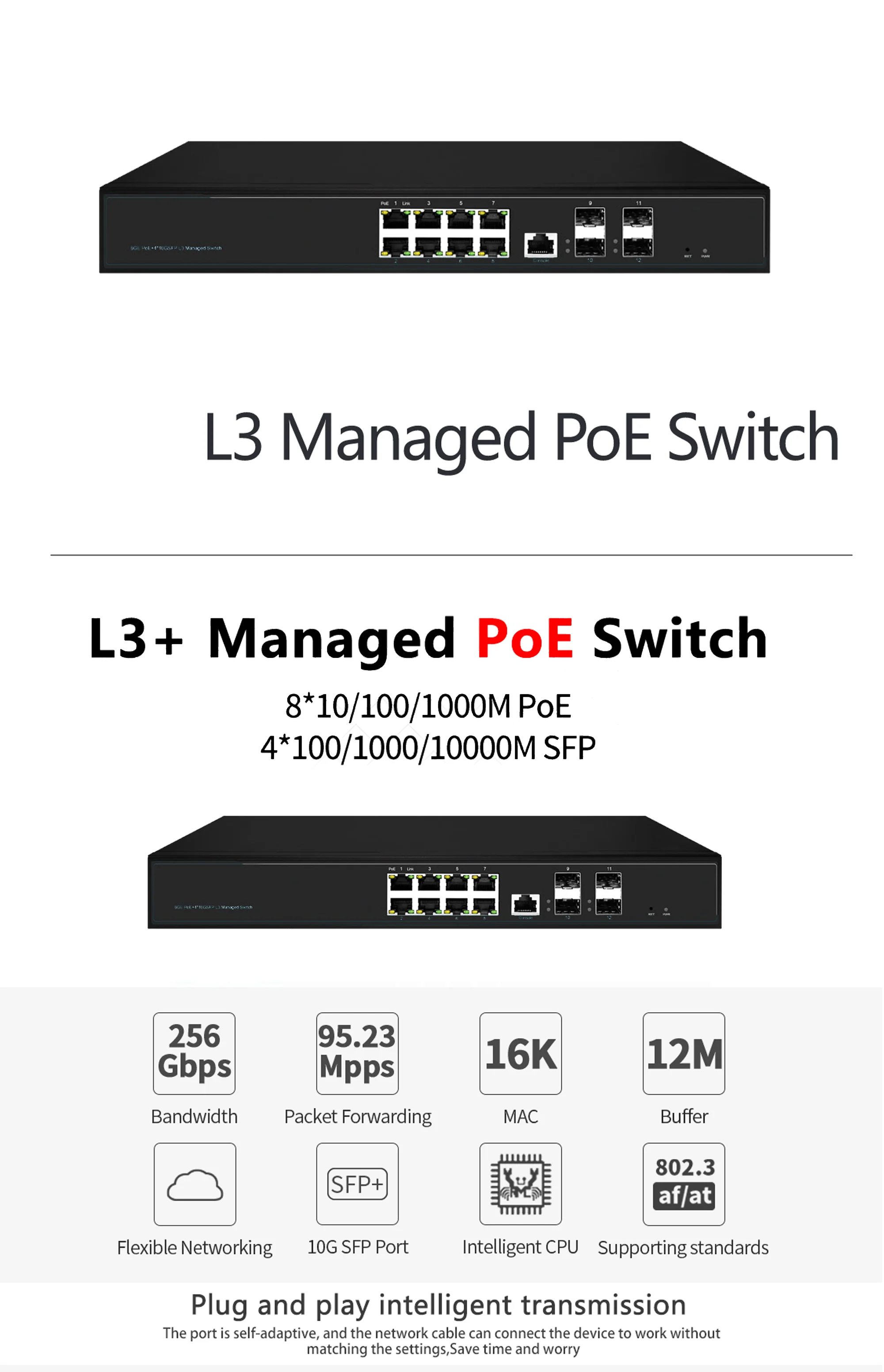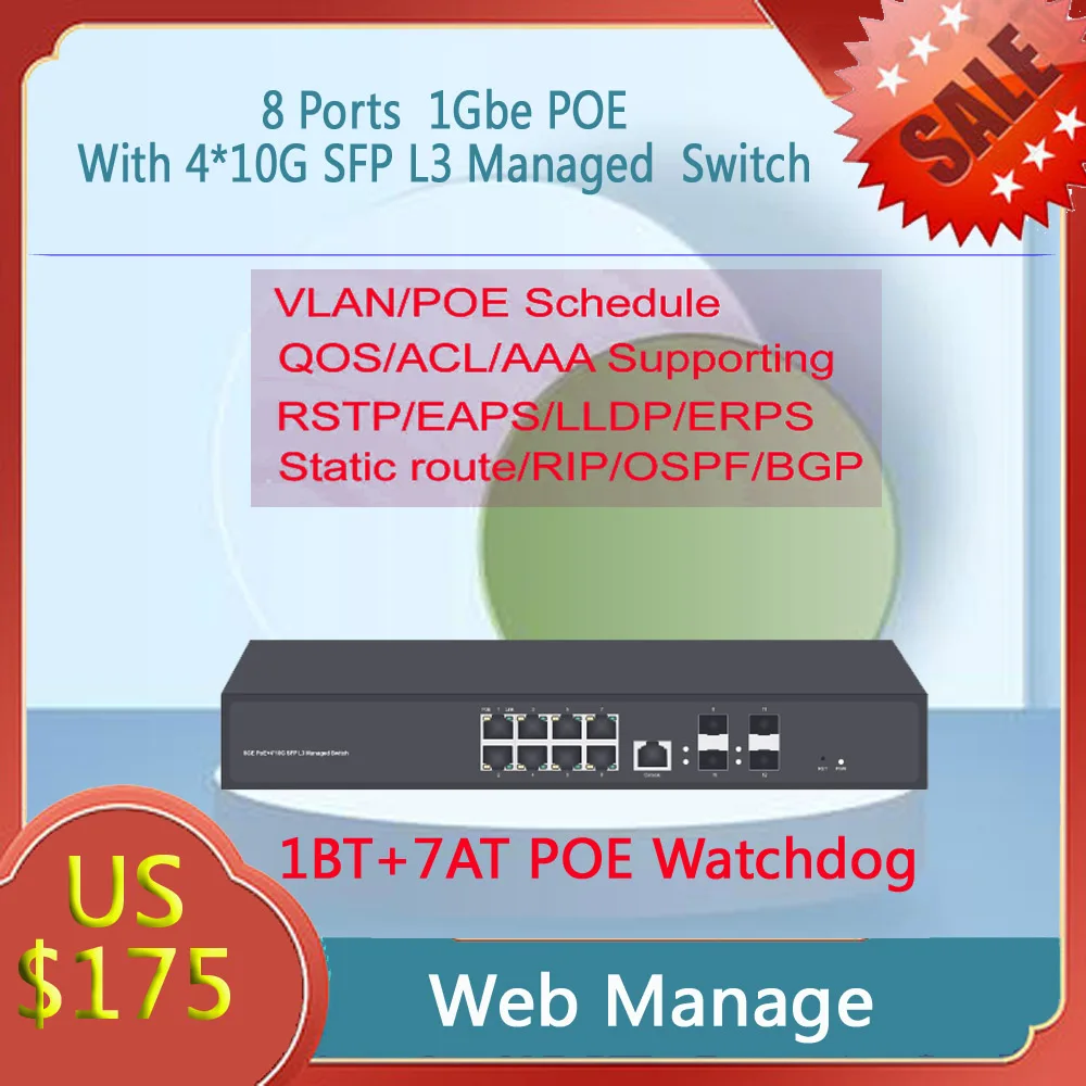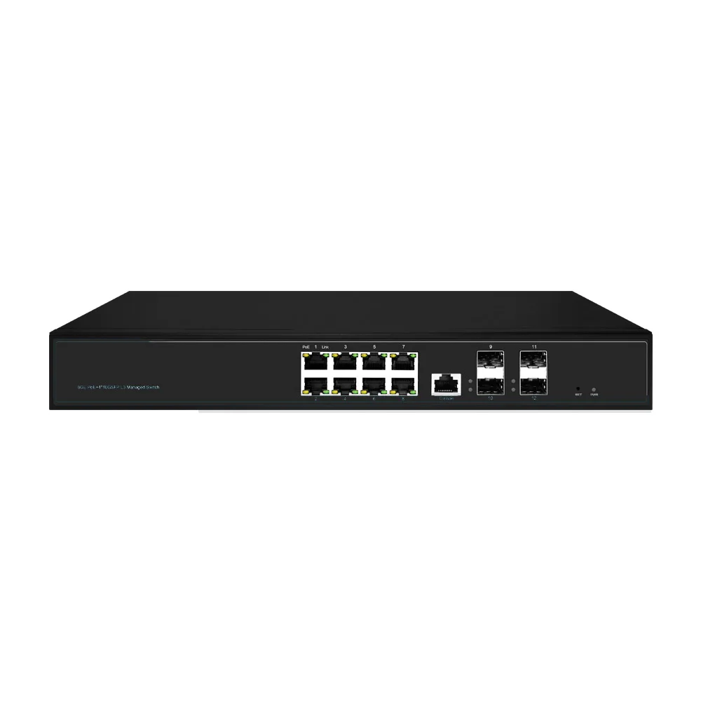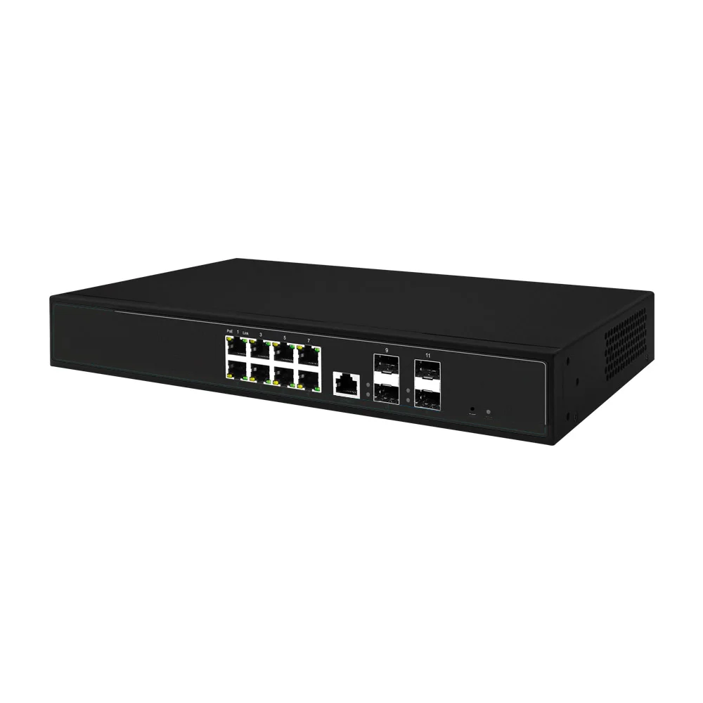 Comprar Interruptor gestionado con 4 puertos, 8 puertos, 1G, PoE o RJ45, L3, 10Gbe, SFP, | Enlace ascendente 8x10/100/1000M, Puerto PoE + 4x100/1000/10000M, SFP