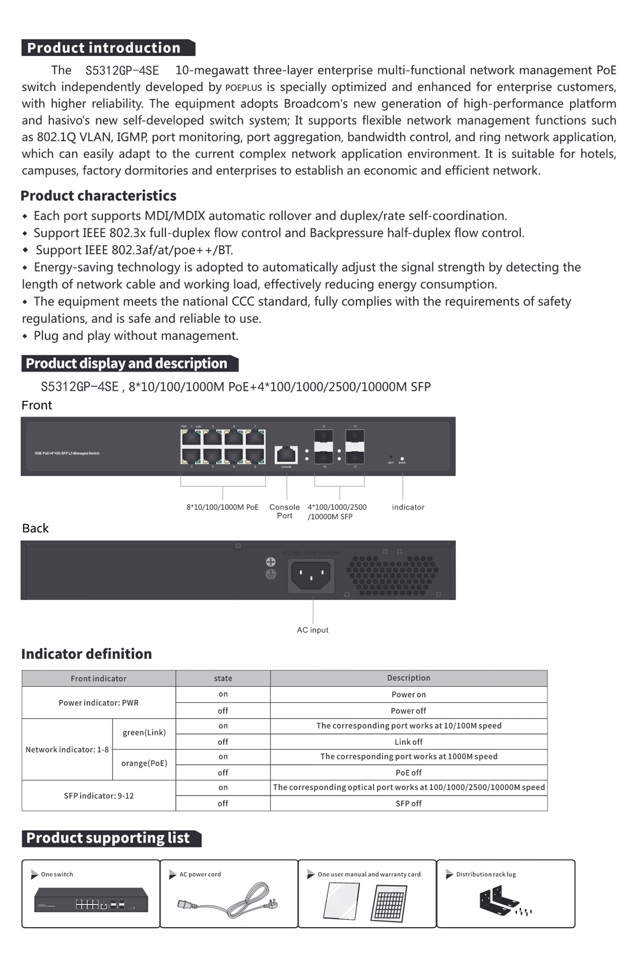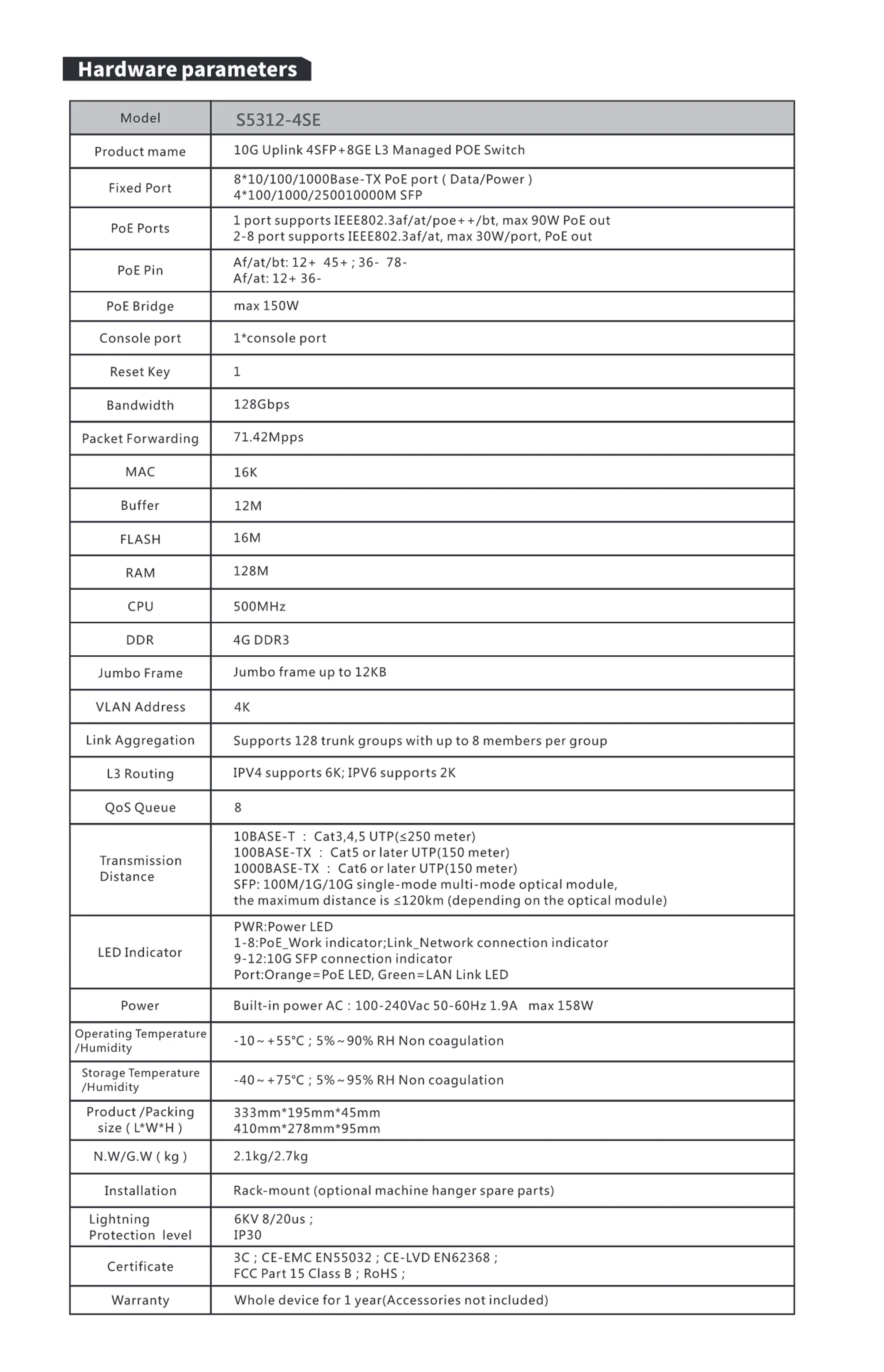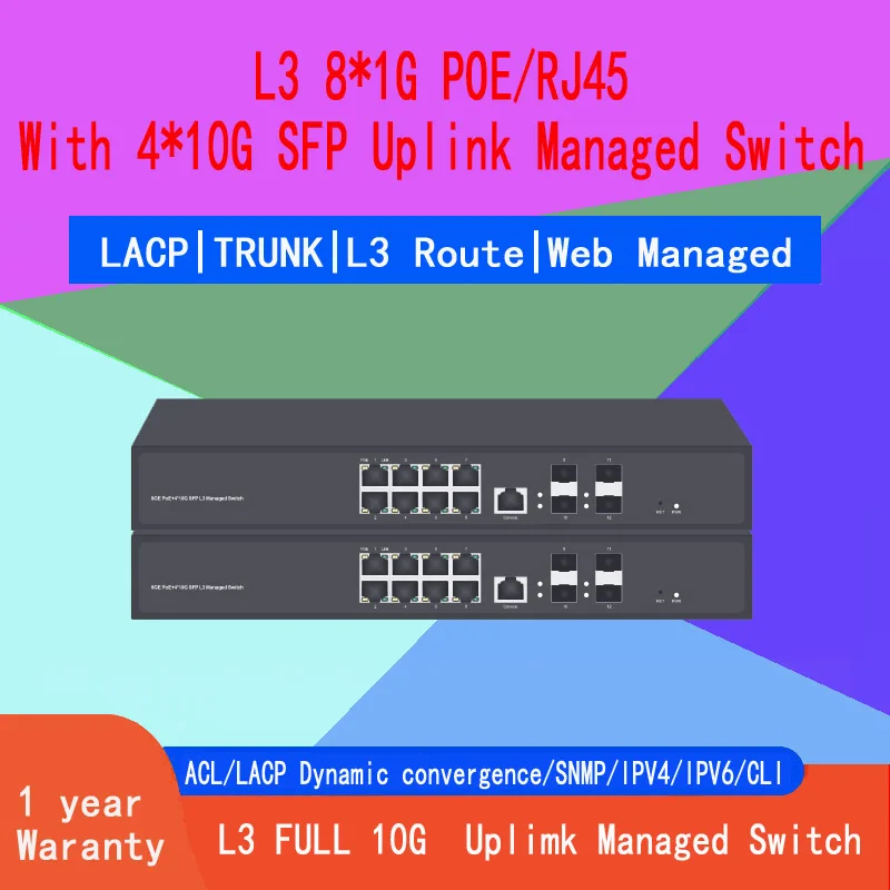 Comprar Interruptor gestionado con 4 puertos, 8 puertos, 1G, PoE o RJ45, L3, 10Gbe, SFP, | Enlace ascendente 8x10/100/1000M, Puerto PoE + 4x100/1000/10000M, SFP