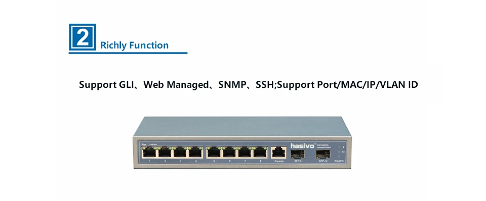 Comprar Interruptor gestionado de 8 puertos, conmutador Ethernet Gigabit de 10/100/1000M con 8 puertos, 1000M, Rj45, 2 puertos, 1000M, fibra SFP