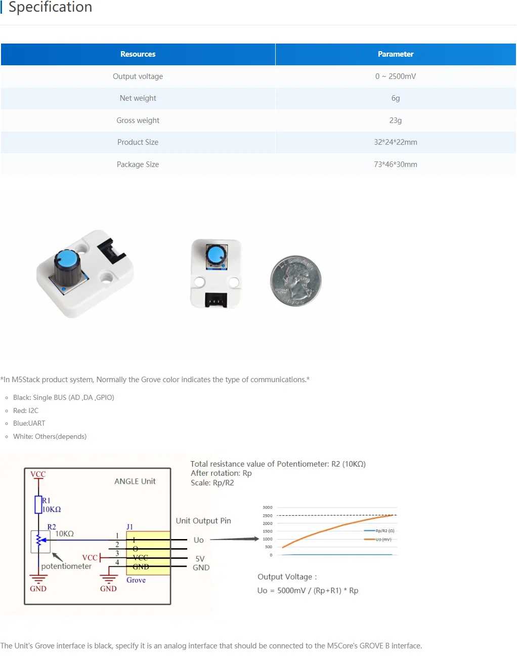 ANGLE es una unidad de interruptor giratorio que simplemente incluye un potenciómetro de 10K Ohm en el interior. Esta unidad se puede utilizar para el control giratorio de señal continua para aplicaciones como el volumen, el brillo o la velocidad del motor.