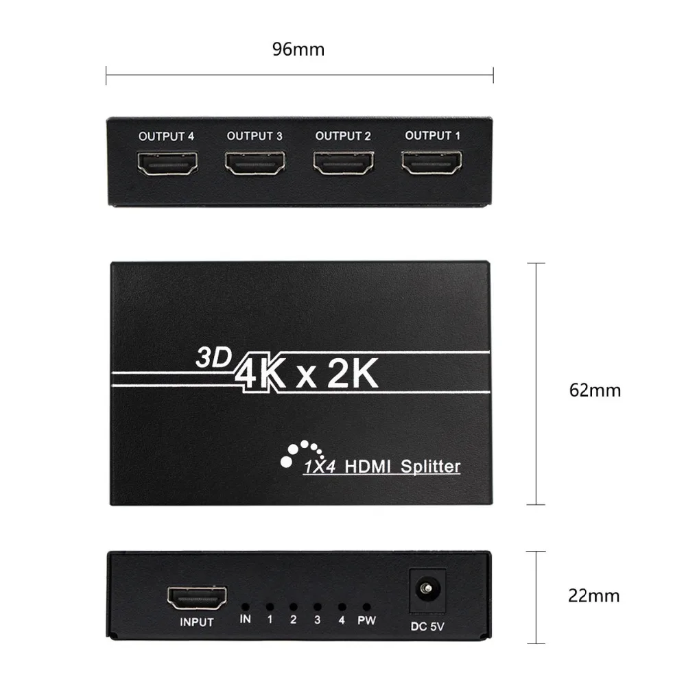 HDMI Switch 4K HDMI Splitter-Conmutador HDMI una entrada cuatro salidas, HDMI Switch Splitter 1X4