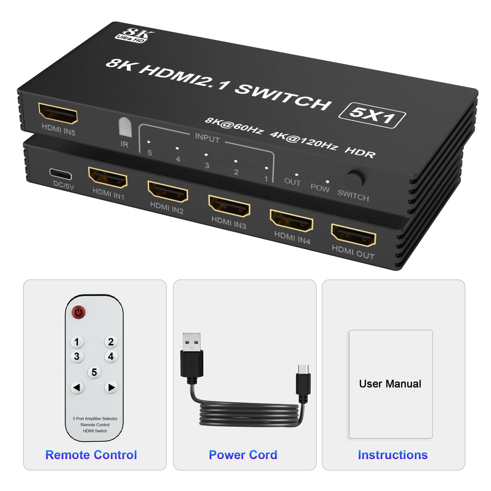 Comprar Interruptor HDMI 120 de 4K y 2,1Hz, divisor con mando a distancia, adaptador multipuerto, conmutador expansor de puerto para PS5, Xbox, reproductor de DVD y TV