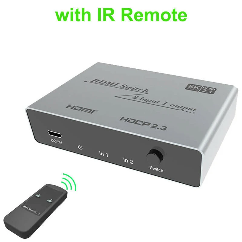 Conmutador 8K HDMI 2x1: admite resolución de hasta 8K @ 60Hz 4K @ 120HZ, proporciona velocidades de transferencia de hasta 48Gbps
