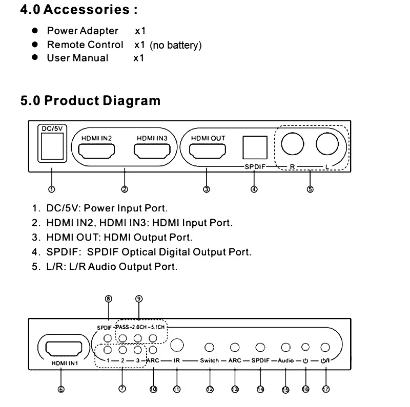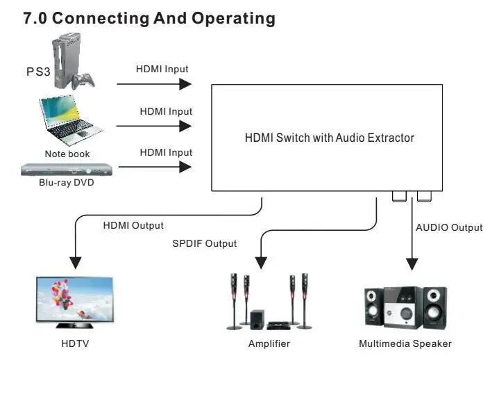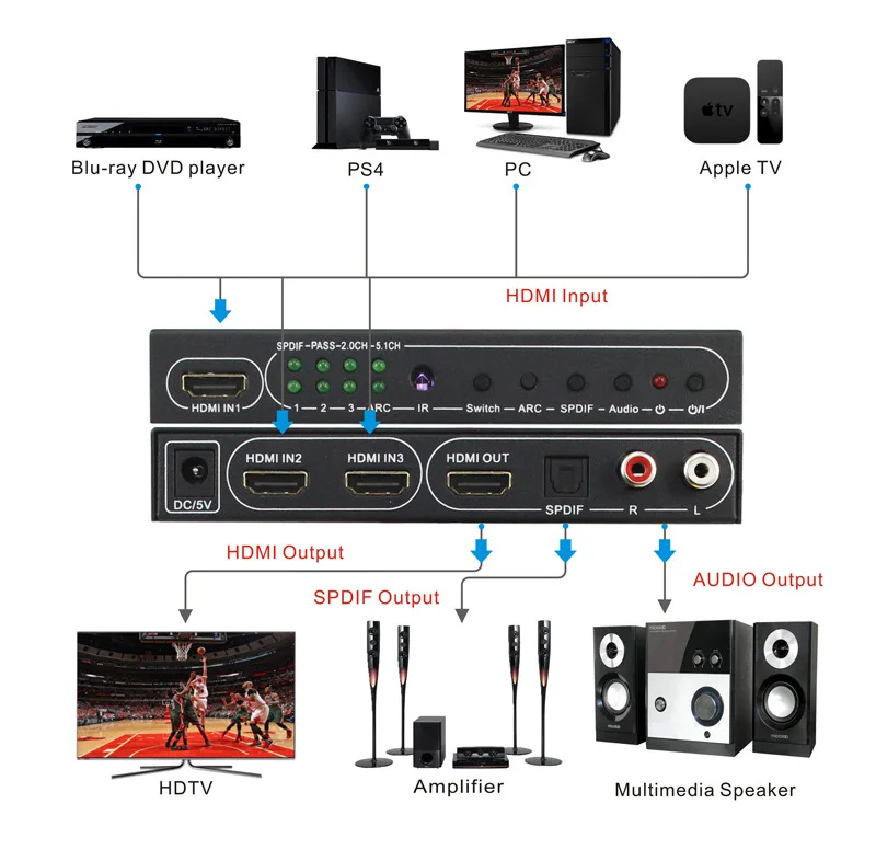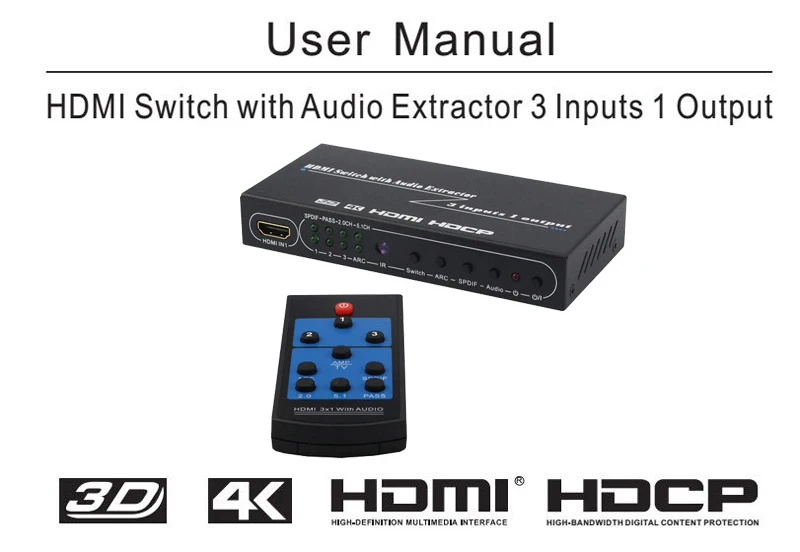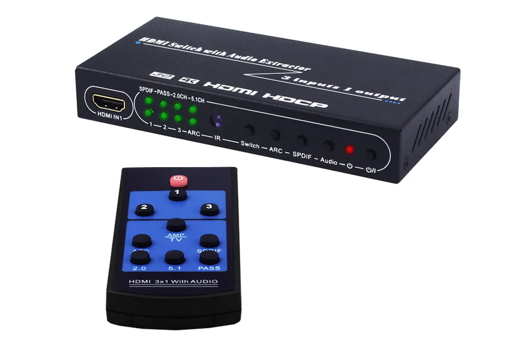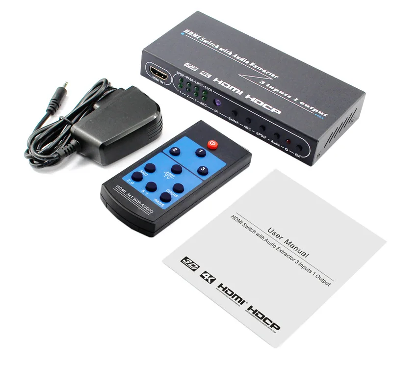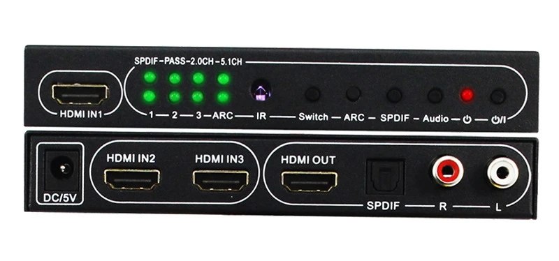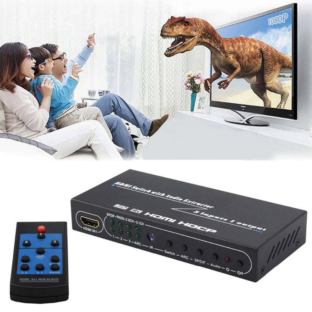 Comprar Interruptor HDMI 3x1 Audio Extractor + SPIDF L/R salida conmutador HDMI1.4 4K x 2K 3D IR arco 7.1CH 3 Video interruptor de fuente de poder Convertidor para PS4 XBox TV PC DVD reproductor amplificador HDTV