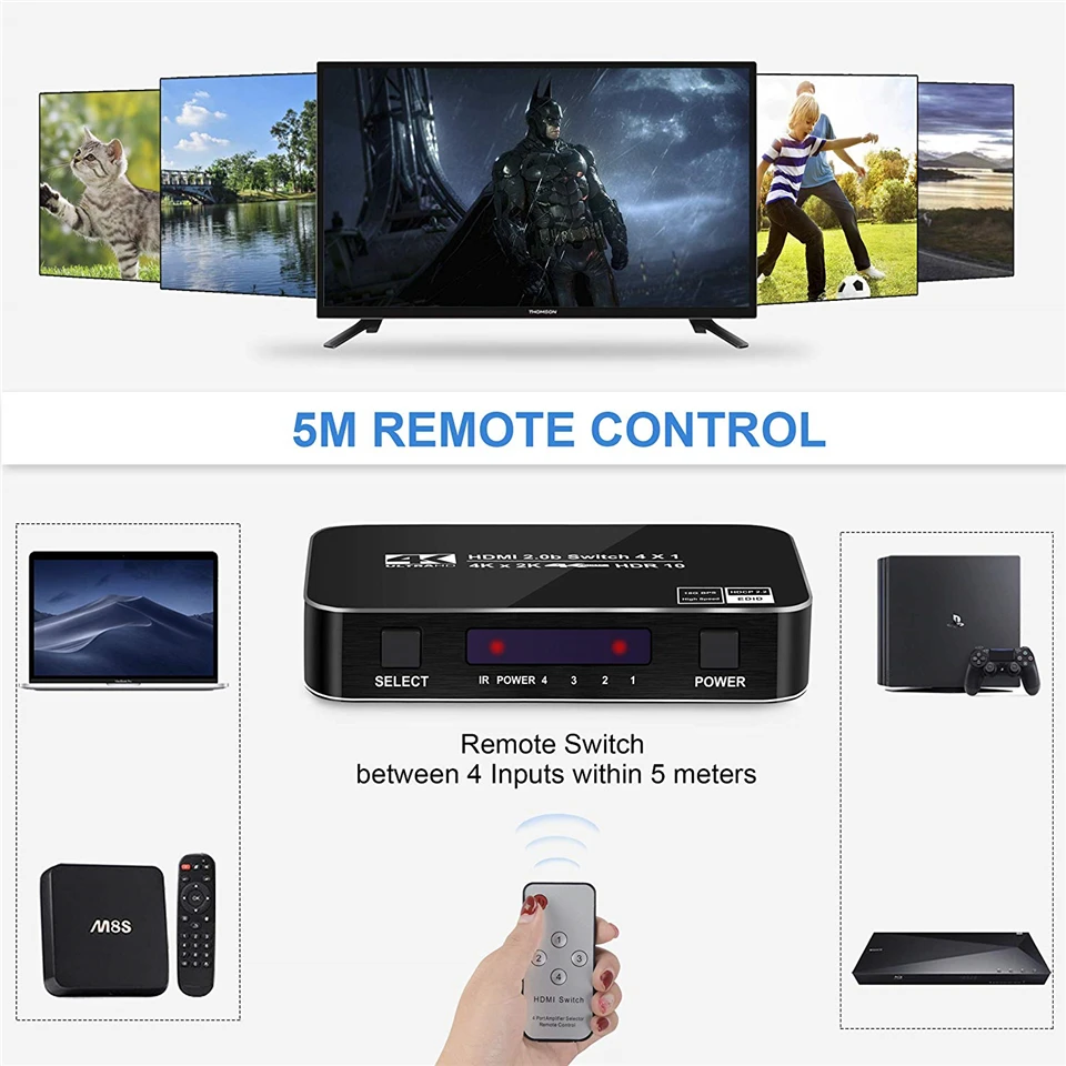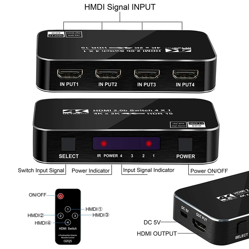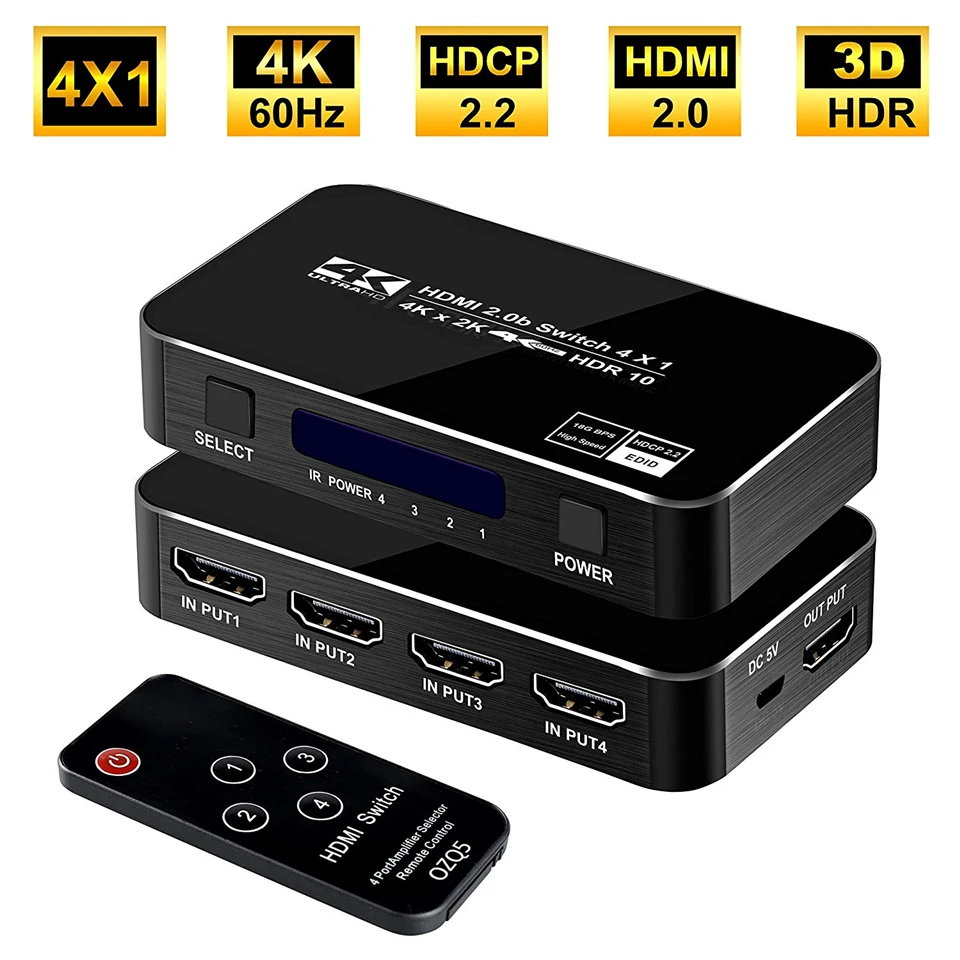 Comprar Interruptor HDR 4K HDMI 2022 para PS4 2,0, 4 puertos, 18gbps, 4x1, compatible con HDCP 2,2, HDMI, caja de HUB con IR Mini HDMI, interruptor remoto para PS4 360