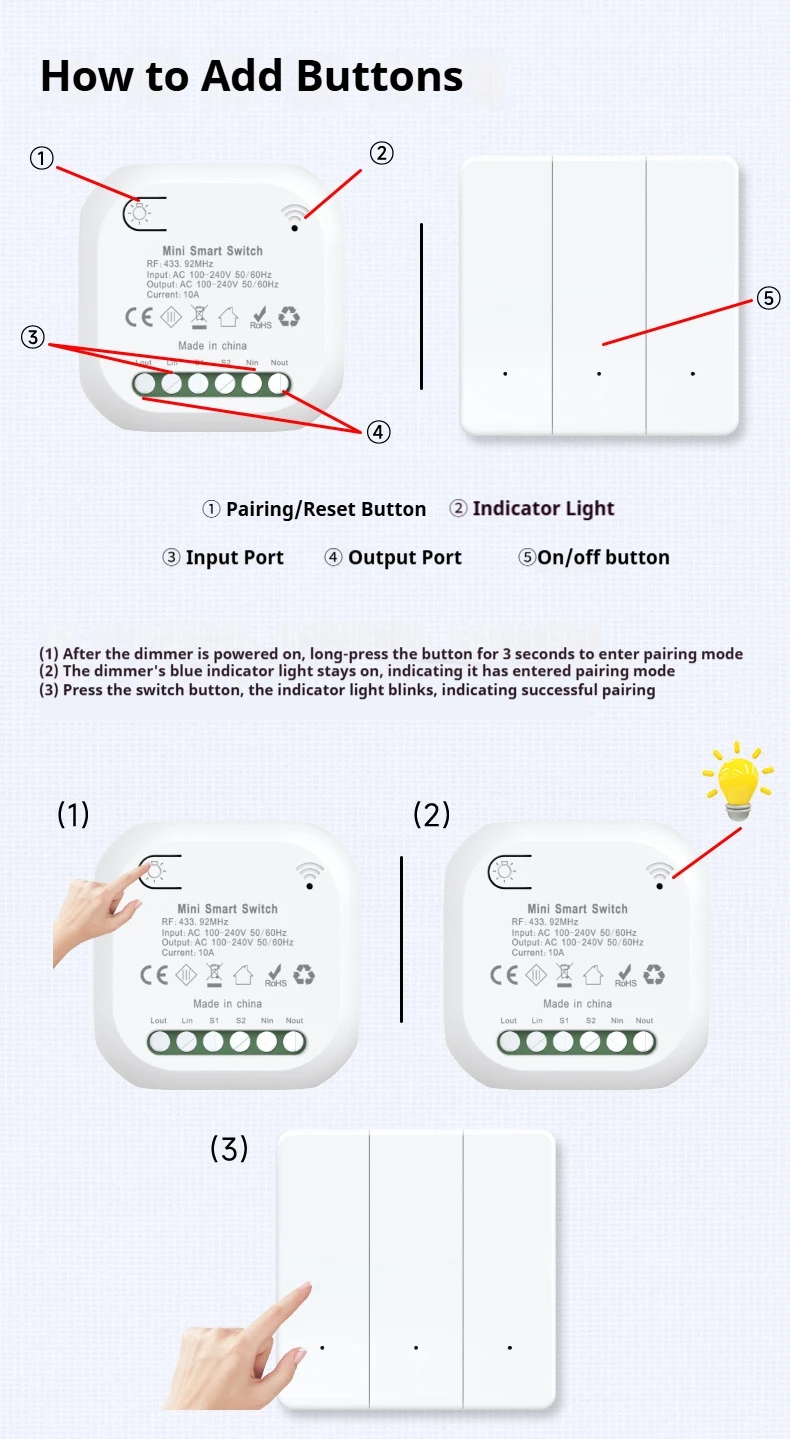 Comprar Interruptor inalámbrico RF433, Control remoto, minimalista, blanco crema, resaltado, consumo de energía ultrabajo, conjunto de combinación de interruptor inteligente