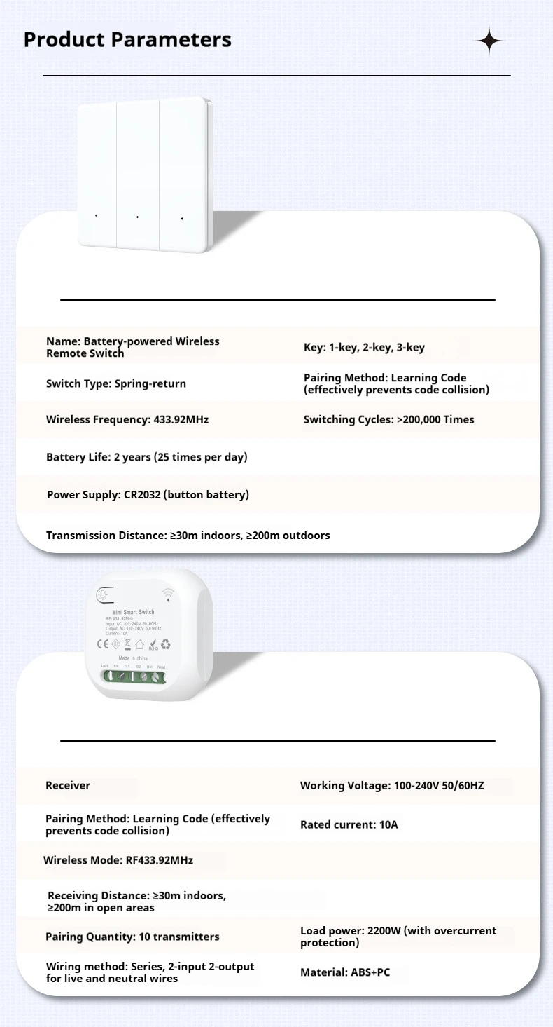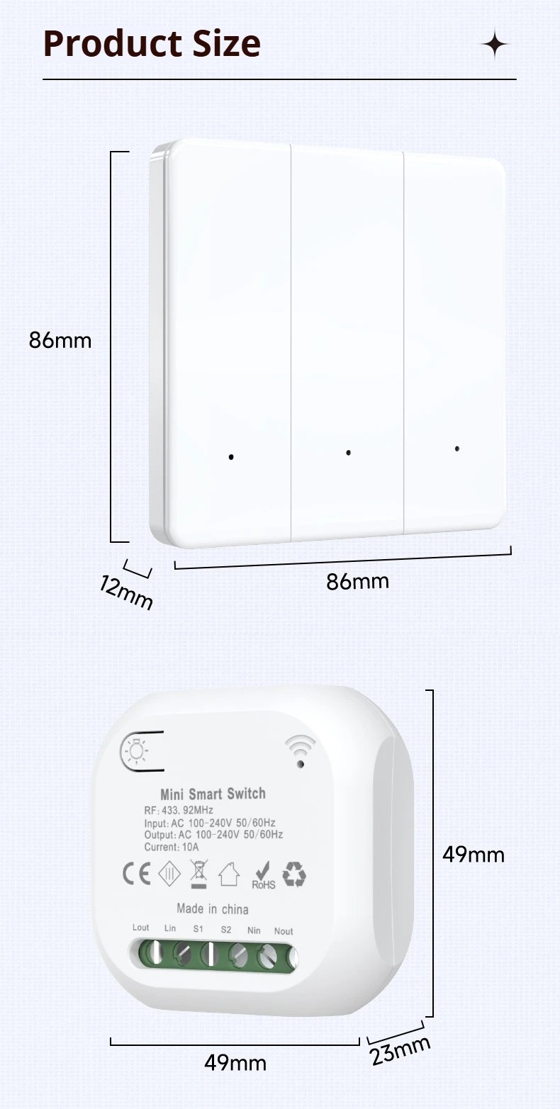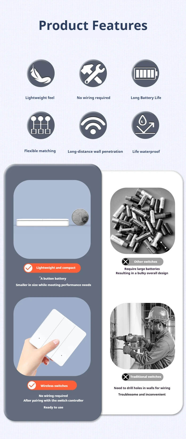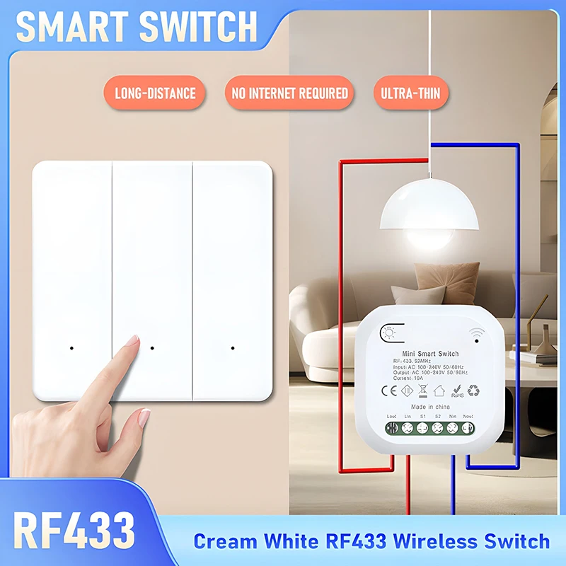 Interruptor inalámbrico RF433, Control remoto, minimalista, blanco crema, resaltado, consumo de energía ultrabajo, conjunto de combinación de interruptor inteligente