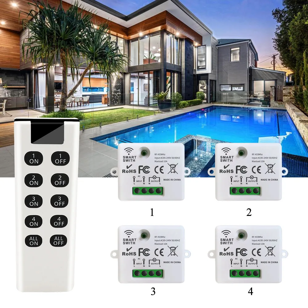 Puedes usar el mando a distancia de 10 botones para controlar cuatro receptores juntos.