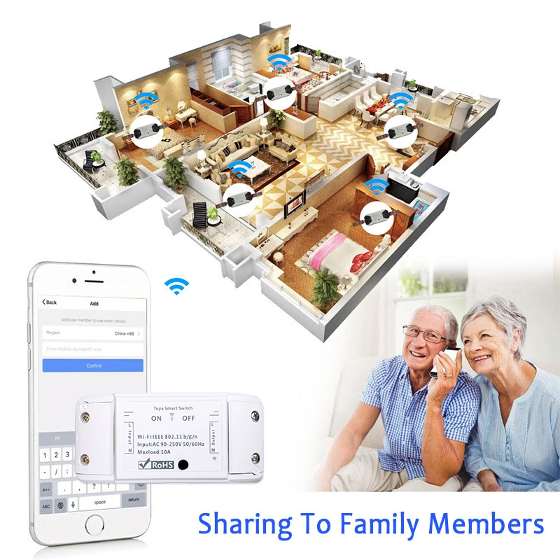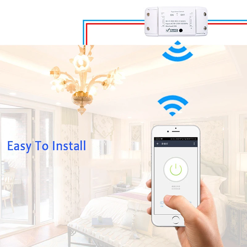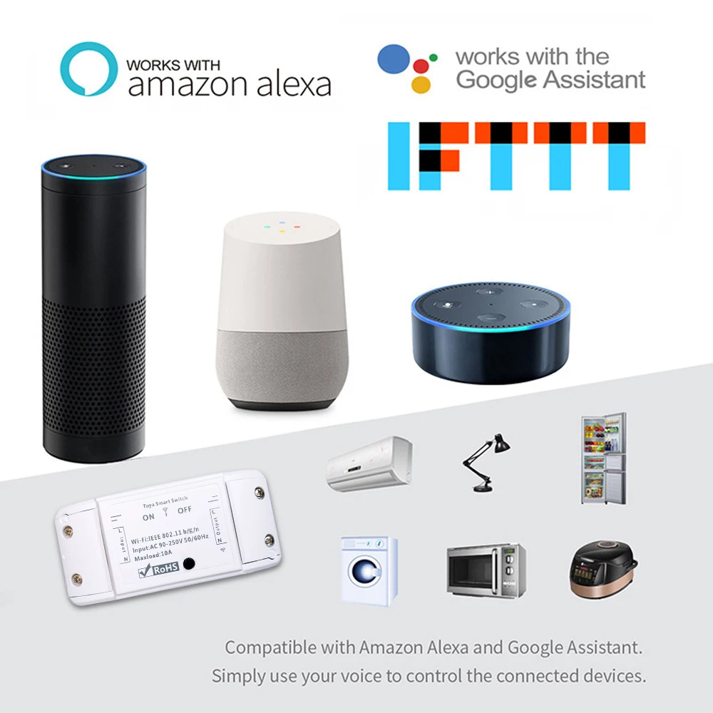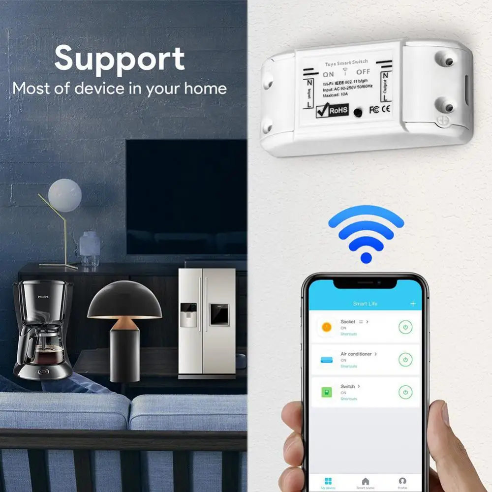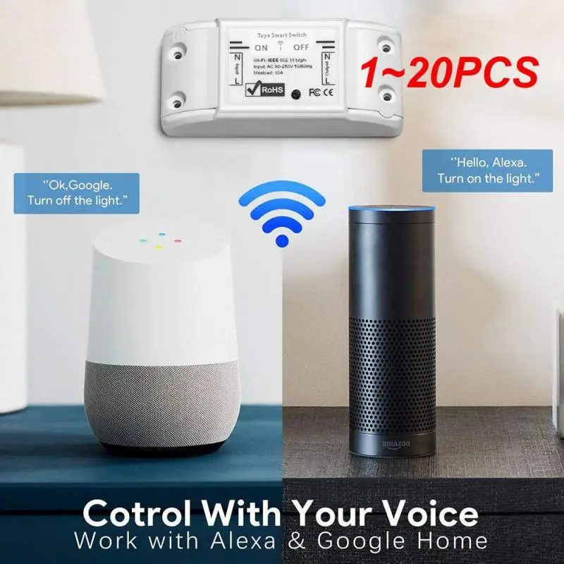 Comprar Interruptor inteligente RF + WiFi, módulo de Control remoto por aplicación Tuya para conexión de casa inteligente, funciona con Alexa, 1 ~ 20 piezas, 10A