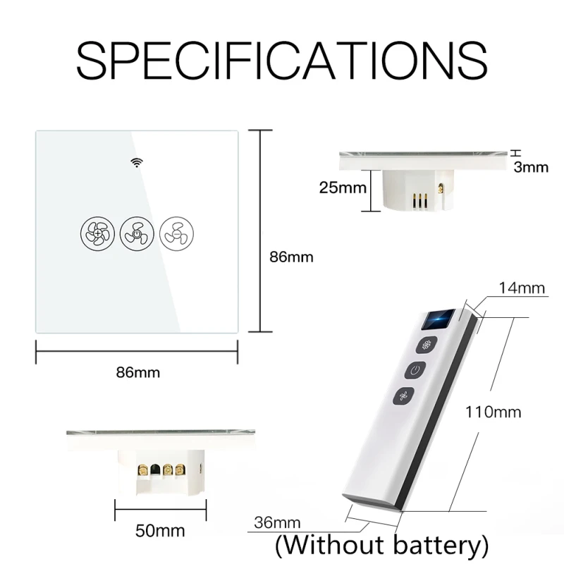 Comprar Interruptor inteligente de ventilador de techo, control remoto inalámbrico, WiFi, RF433, Smart Life/Tuya, funciona con Alexa y