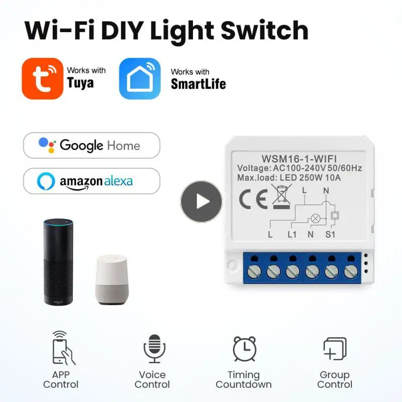Comprar Interruptor inteligente con WiFi para el hogar, dispositivo con Control de 2 vías, compatible con Tuya 10A, 1/2/3/4 entradas, necesita cable neutro, funciona con Alexa Home Alice