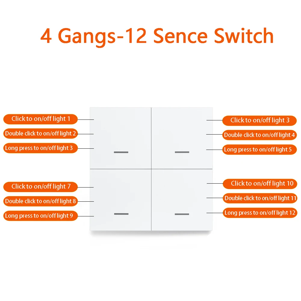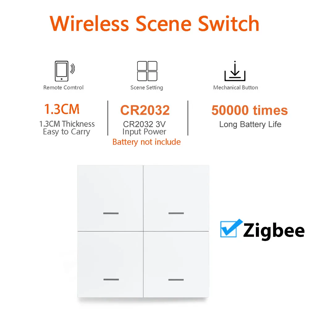 Comprar Interruptor inteligente ZigBee, escenario de 4 entradas, 12 interruptores de escena, controlador de botón pulsador, compatible con deconz Zigbee2mqtt, asistente de hogar