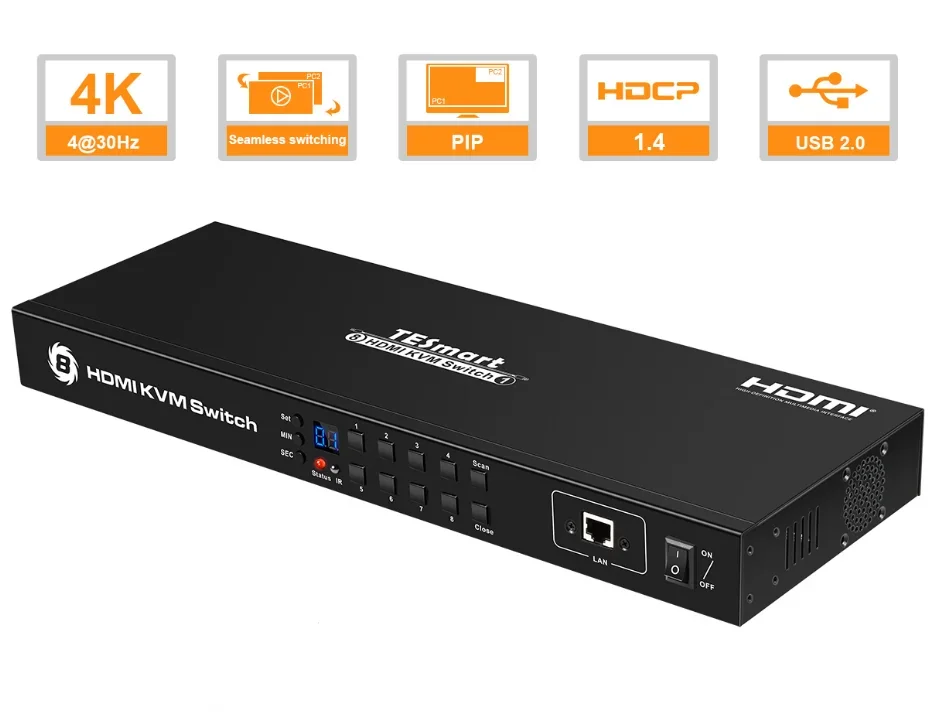Conmutador KVM sin costuras HDMI 4x1 con PAP