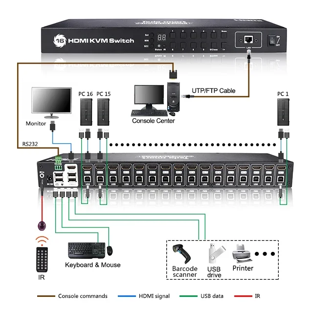 1. T/T, PayPal, Western Union, tarjeta de crédito, transferencia bancaria disponible.Comprar Interruptor KVM de 16 puertos HDMI USB para pc TV, alta calidad