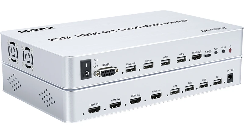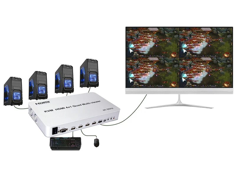 Este Multi-visor KVM HDMI 4x1 Quad es un alto rendimiento con cuatro segmentación de pantalla HD y sin problemas